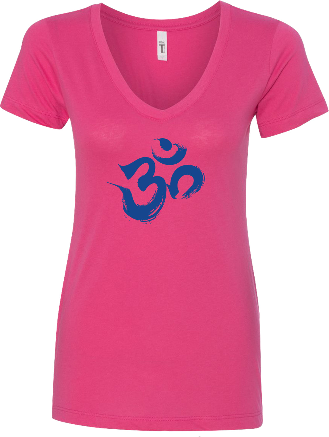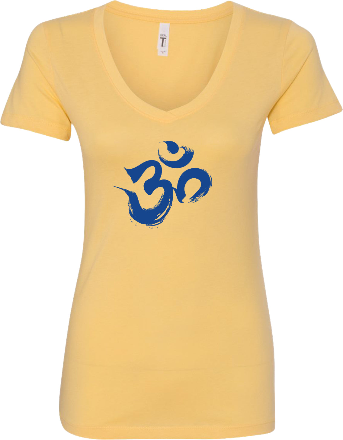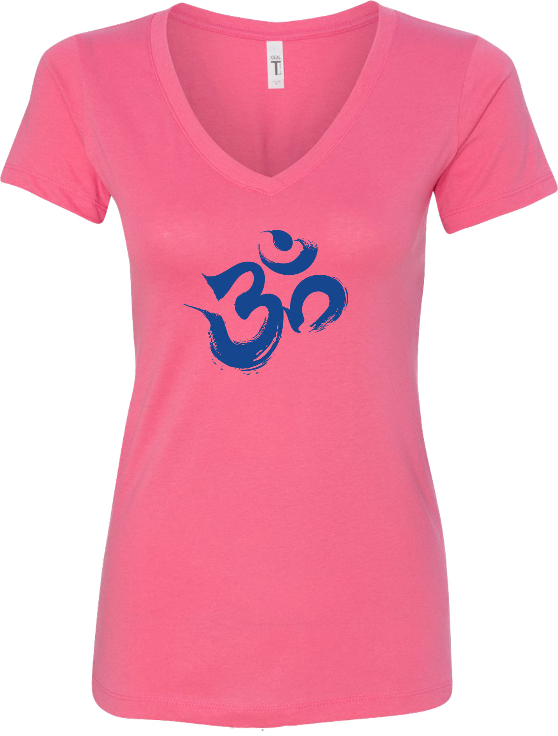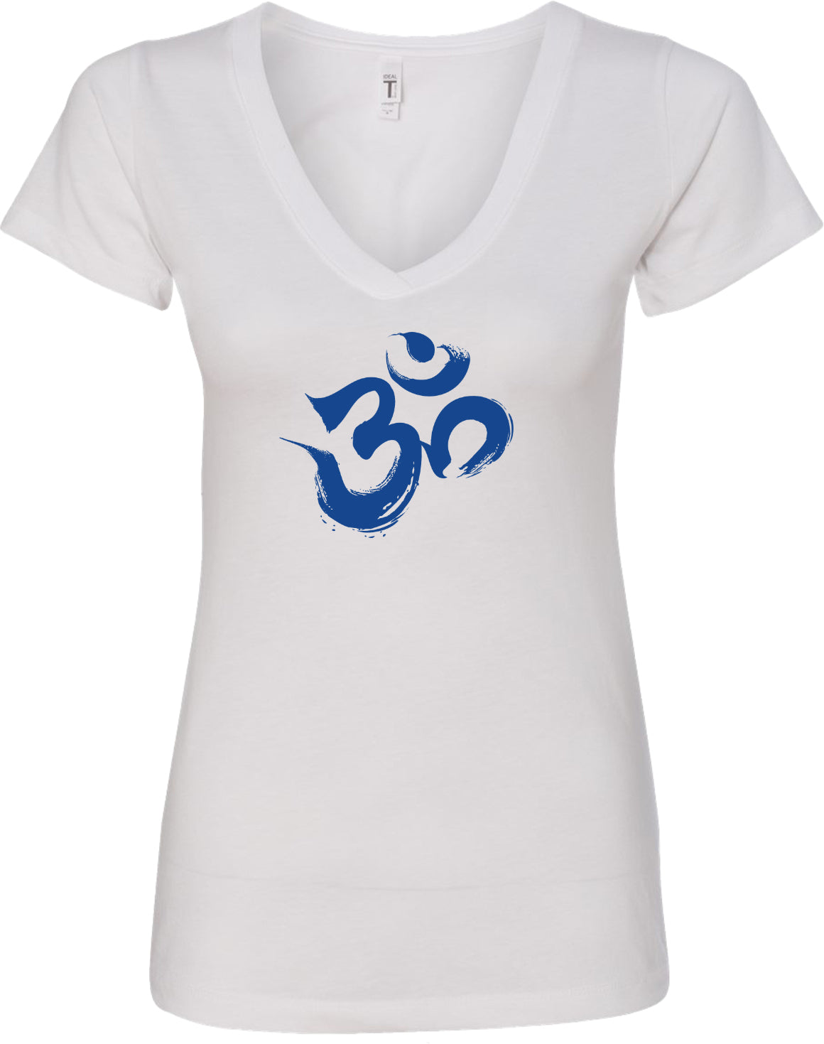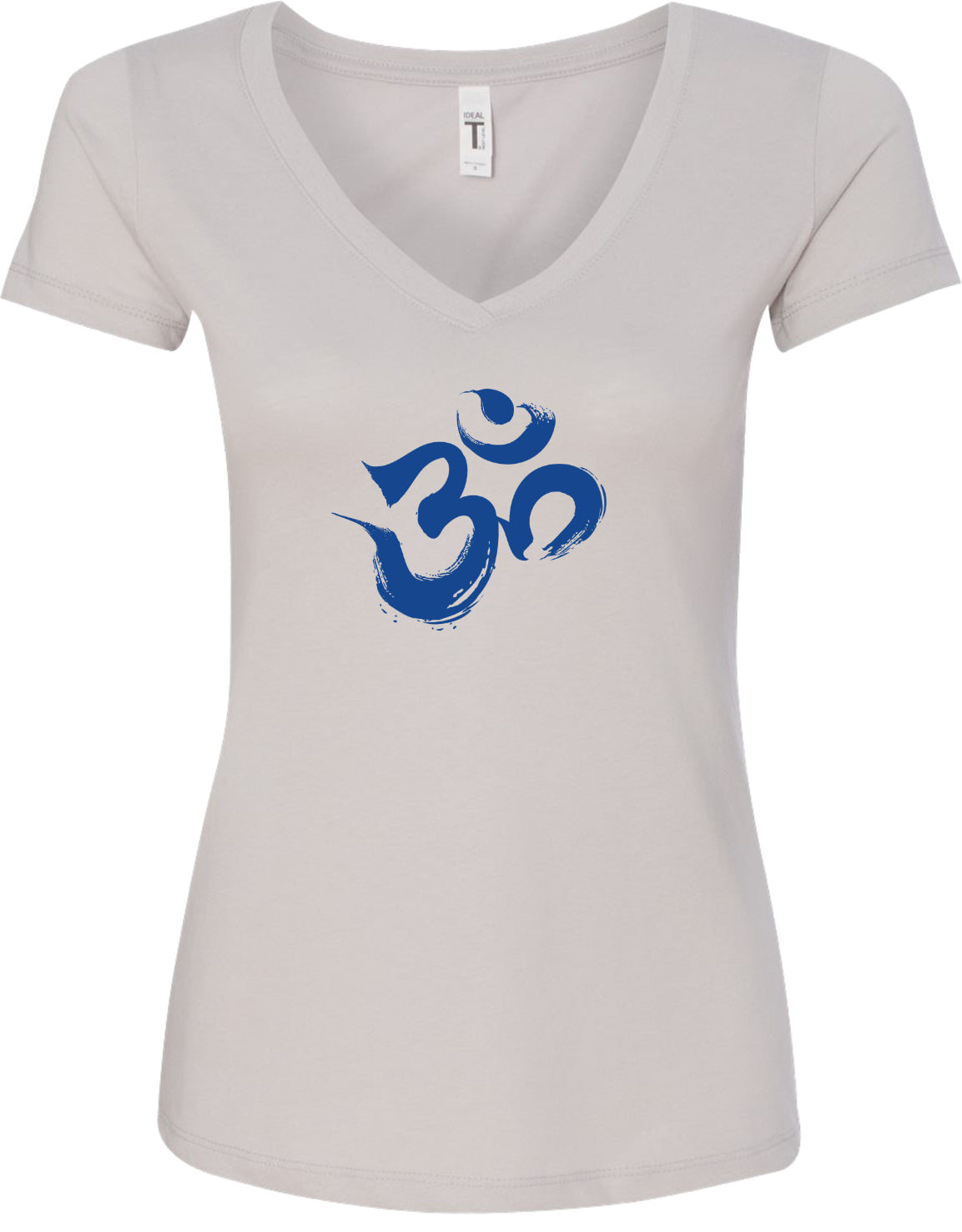 - A ladies ideal v-neck t-shirt featuring the aum symbol in a brushstroke formation