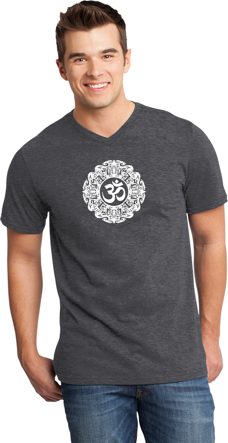 White Ornate OM Important V-neck Yoga Tee Shirt