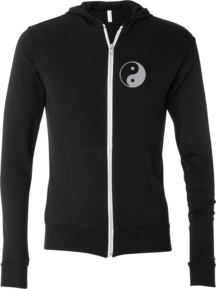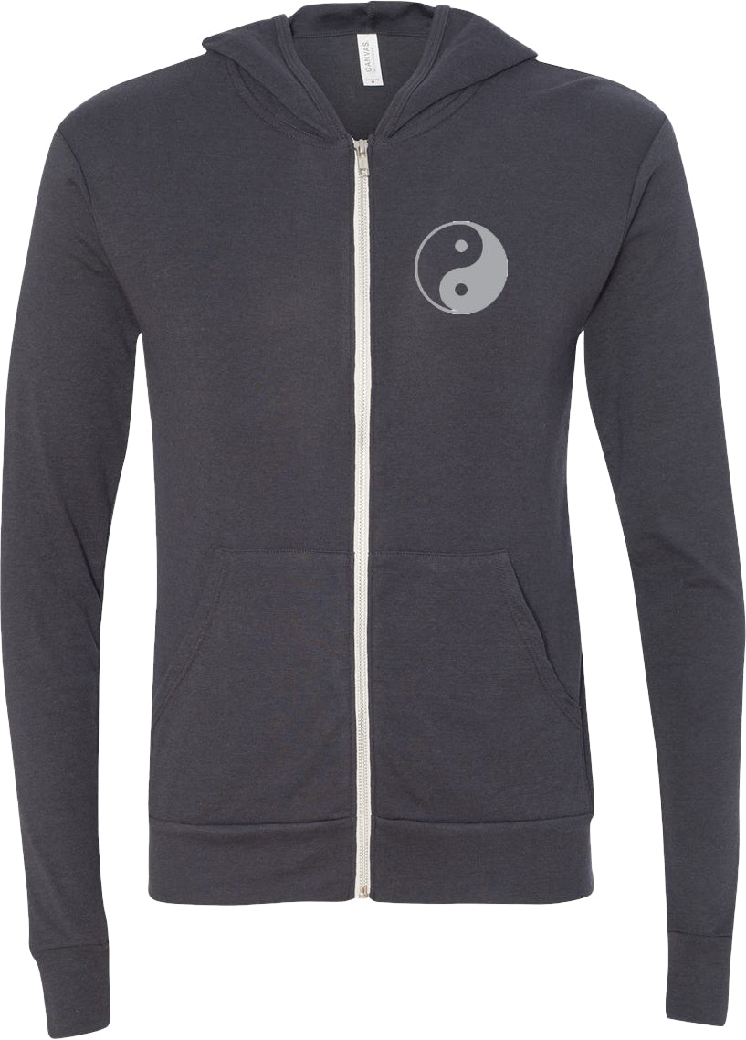 - A men's tri blend full zip hoodie featuring the yin yang pocket print