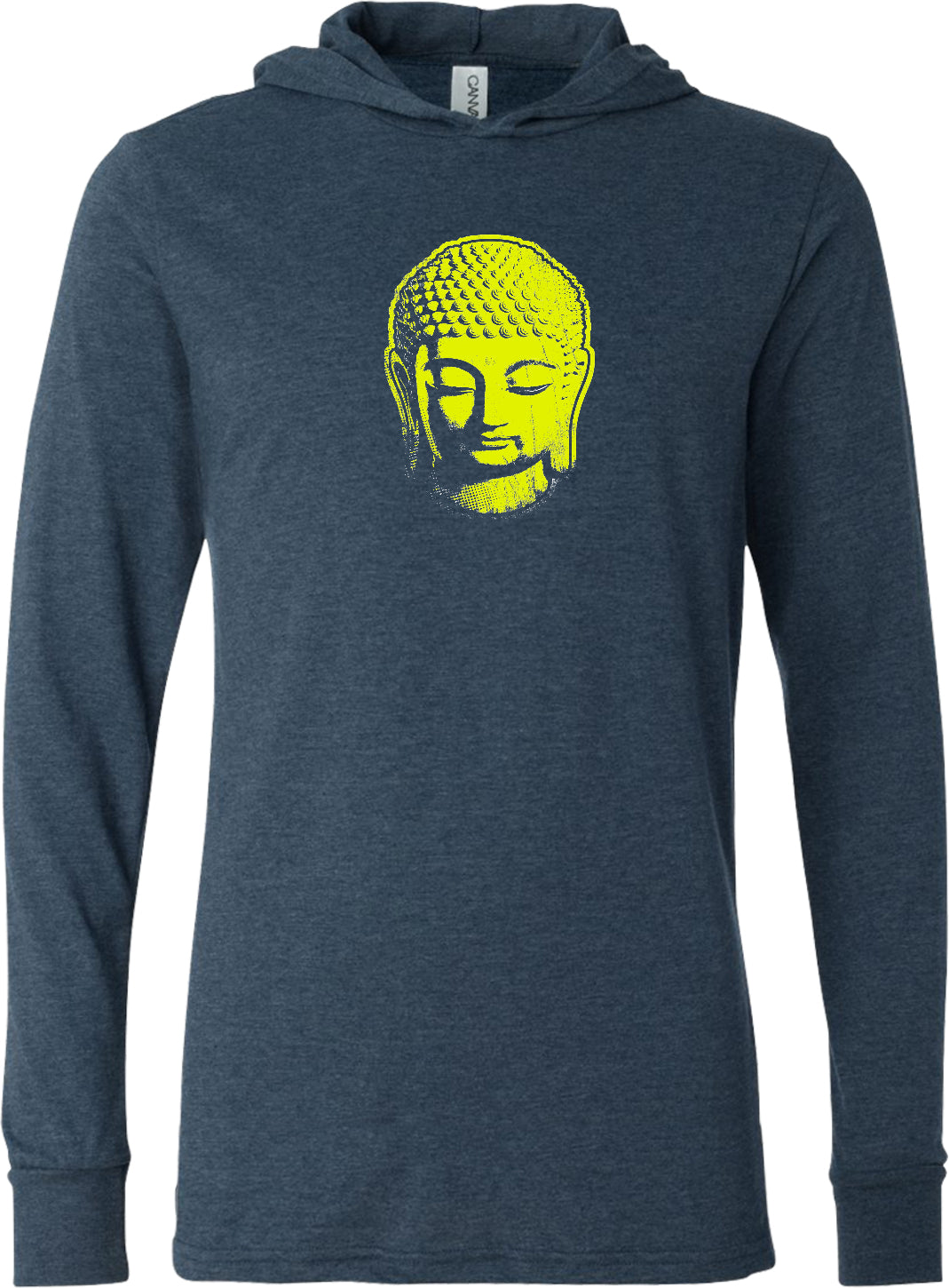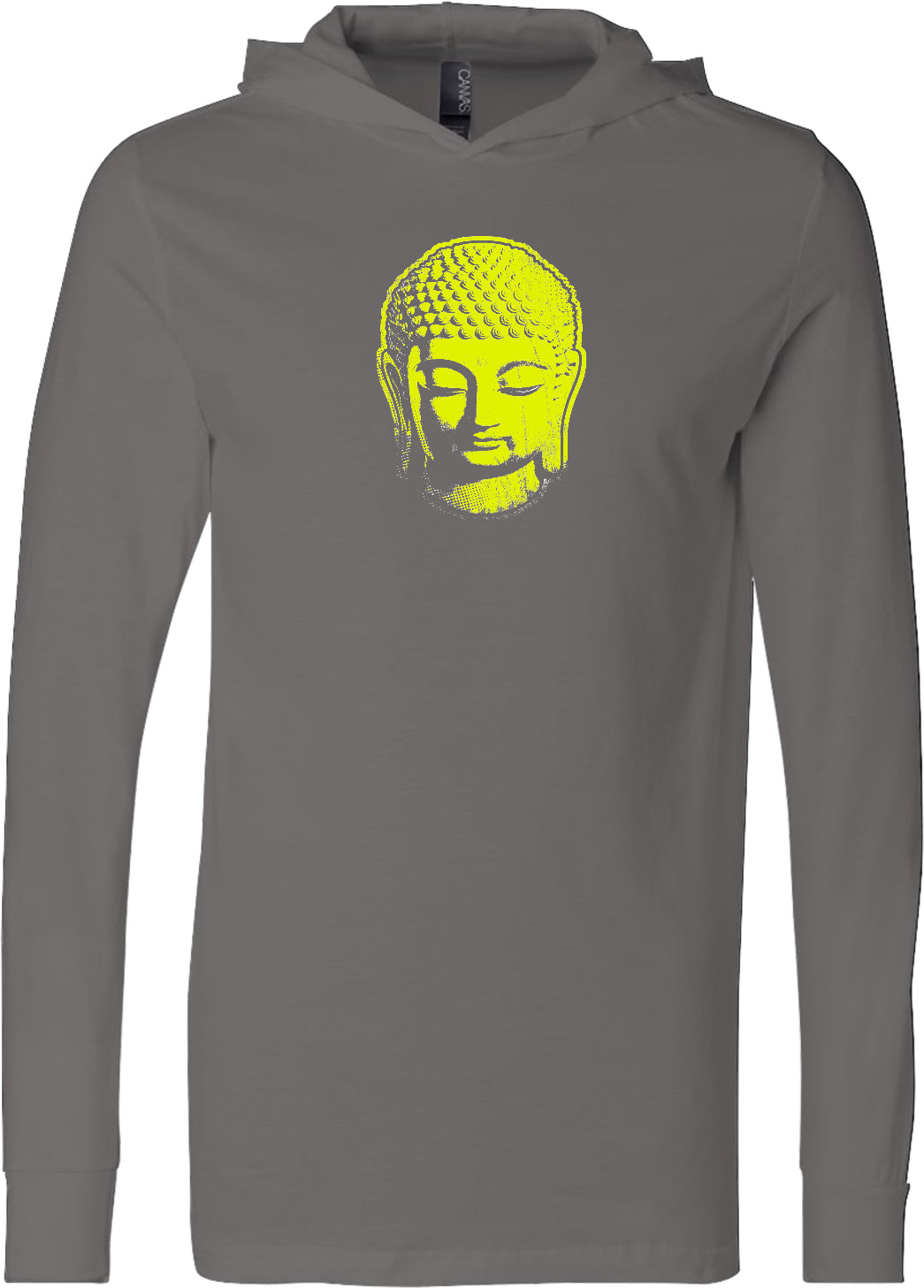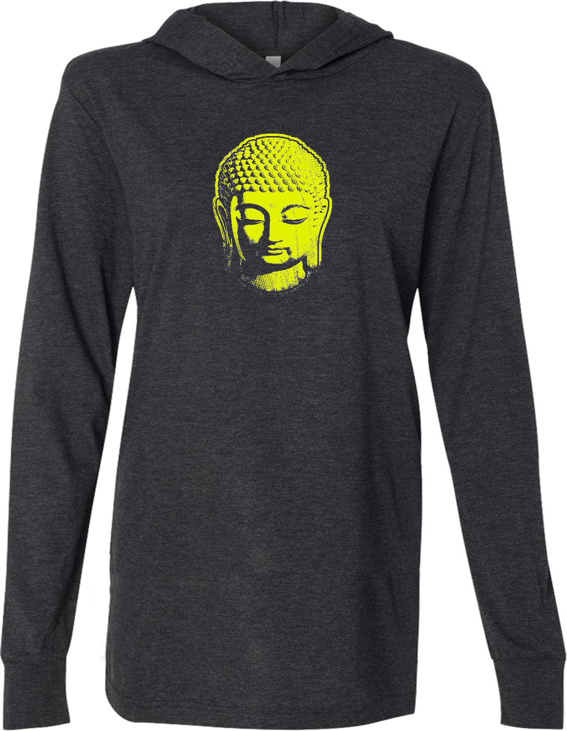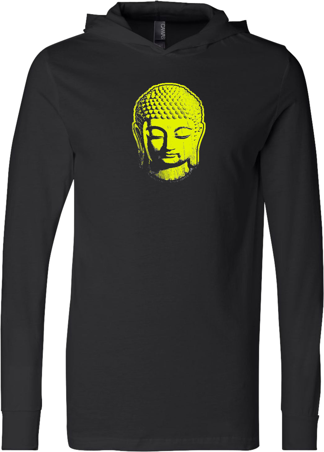 - A men's lightweight hoodie featuring a neon yellow Buddha Head