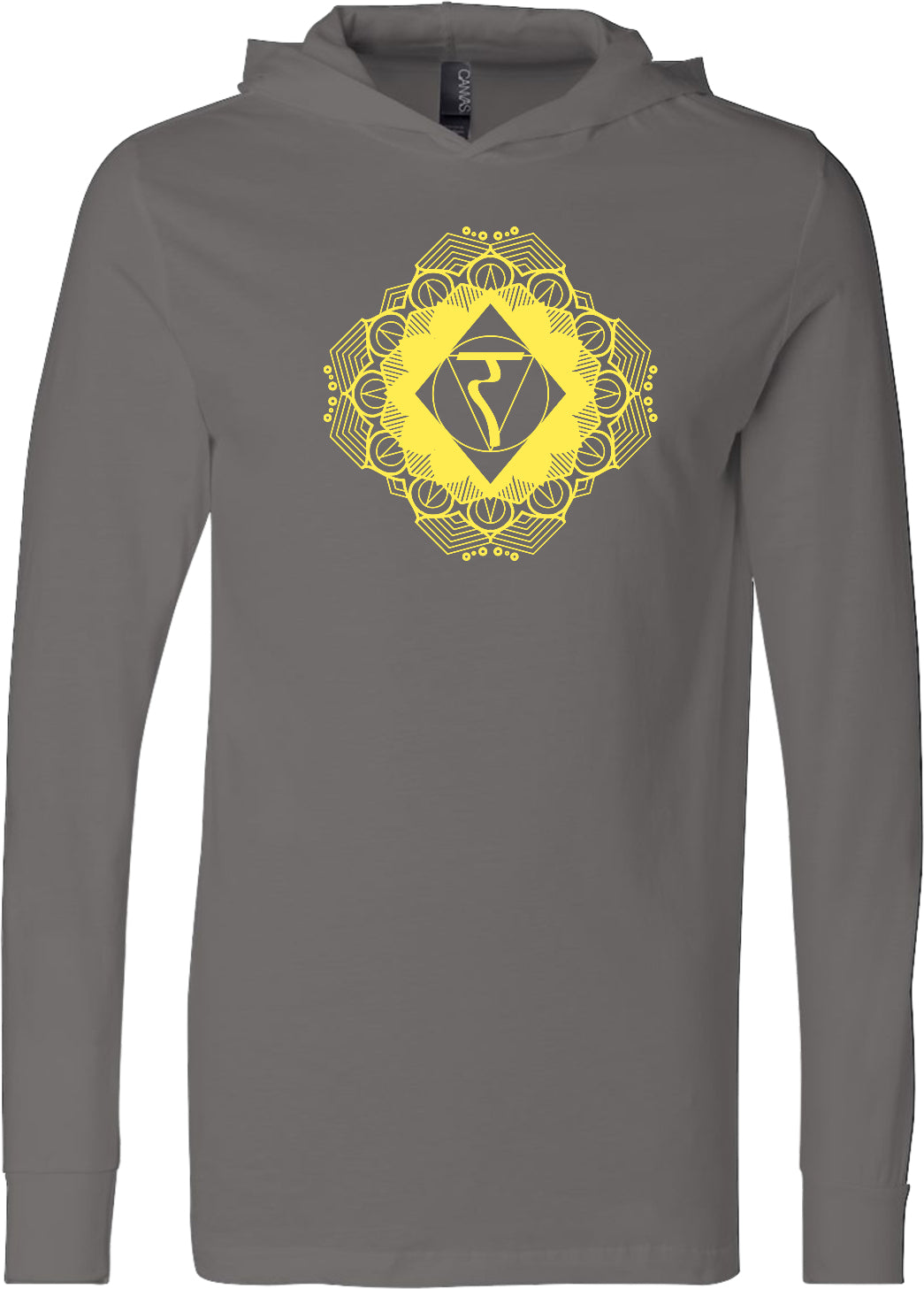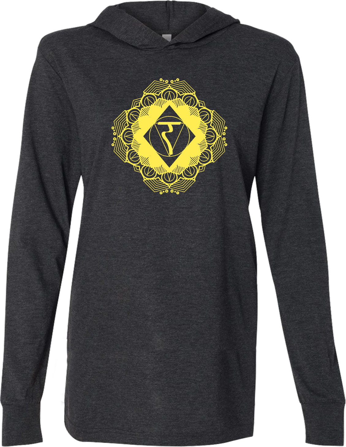 - A men's lightweight hoodie featuring a cool version of the third primary chakra, Manipura