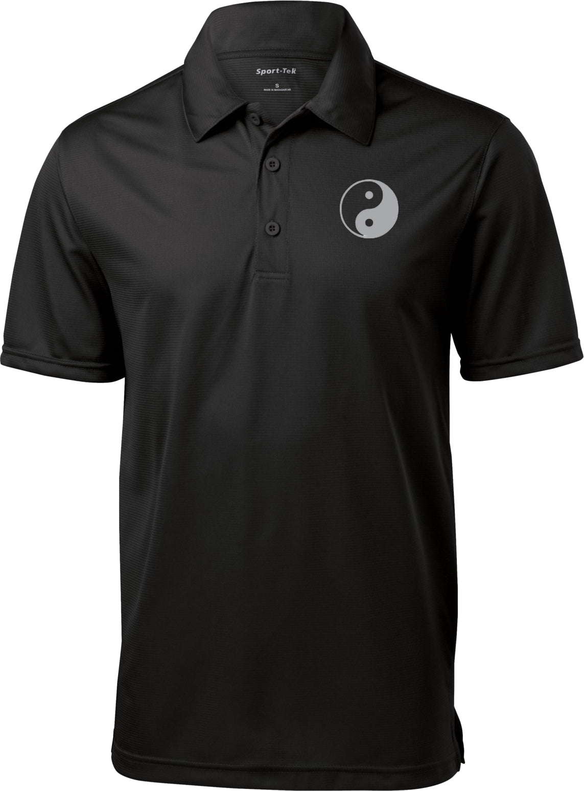 • A mens polo shirt featuring the yin yang symbol