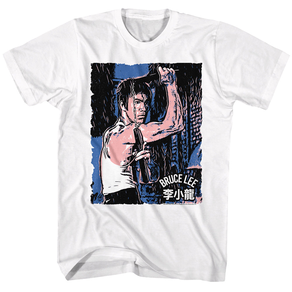 Bruce Lee Sketch with Nunchucks White T-shirt