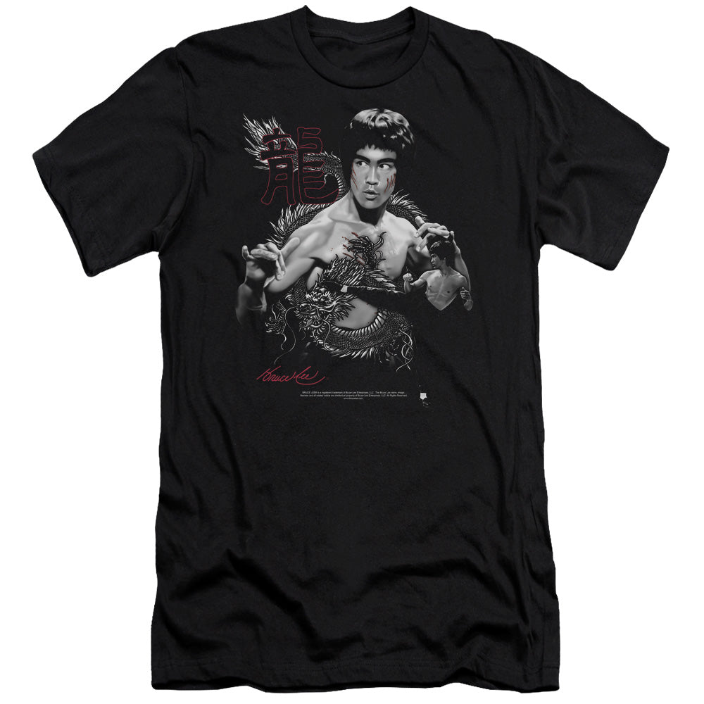 Bruce Lee The Dragon Two Poses Black Slim Fit T-shirt