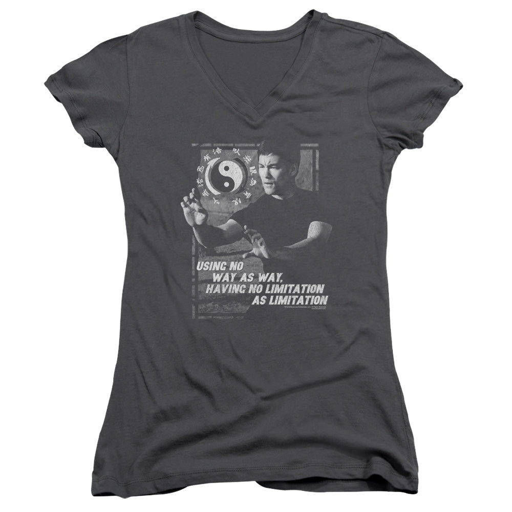 Bruce Lee Using No Way as Way Quote Juniors V-neck Shirt