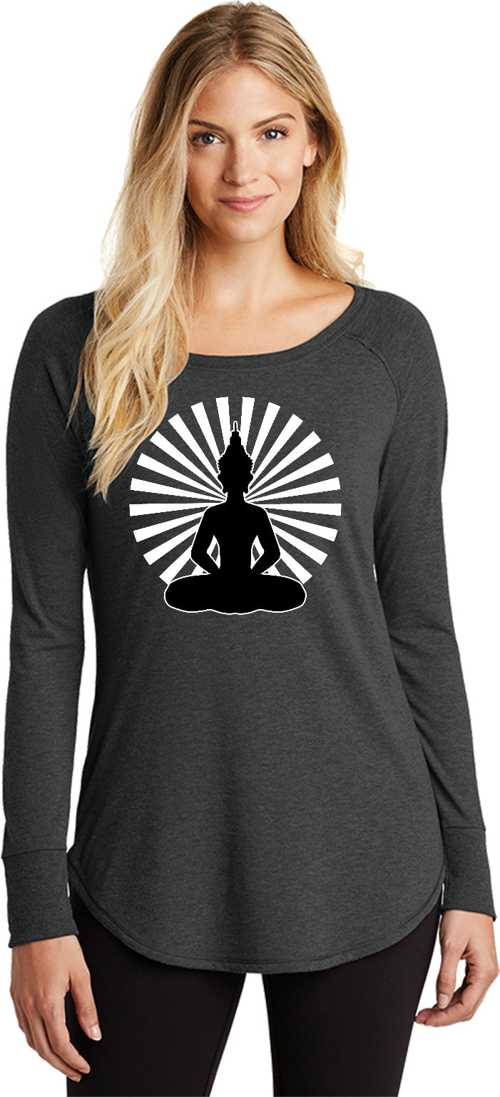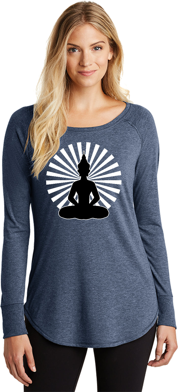Womens Yoga T-shirt Meditating Buddha Long Sleeve Tunic