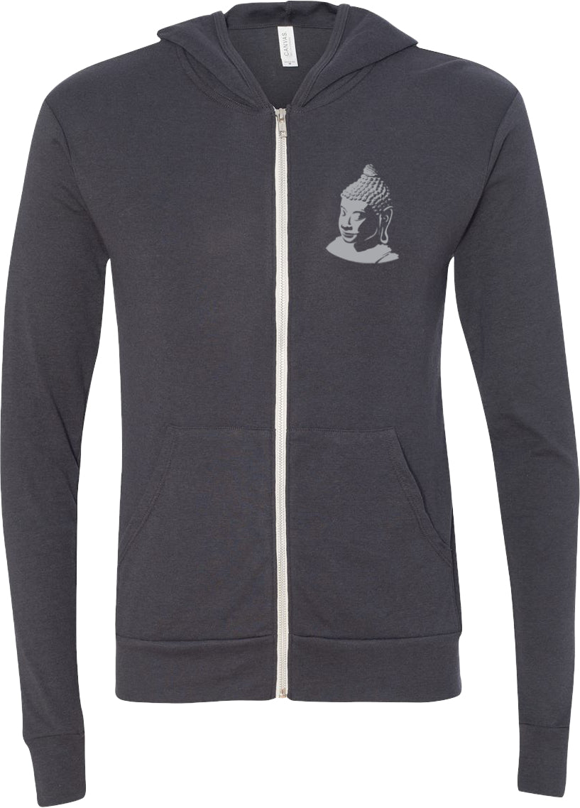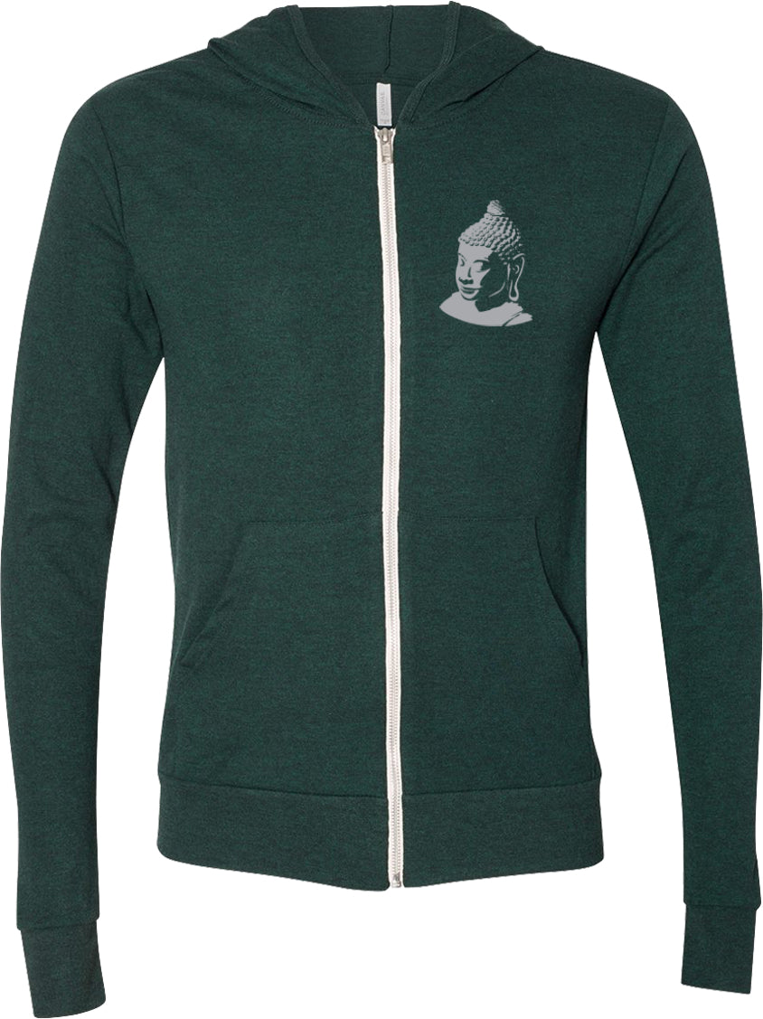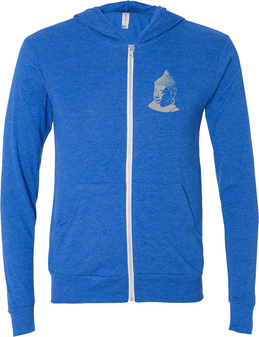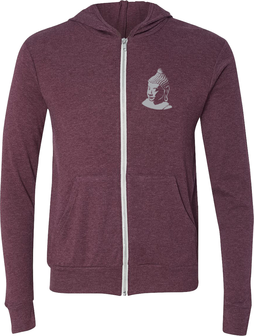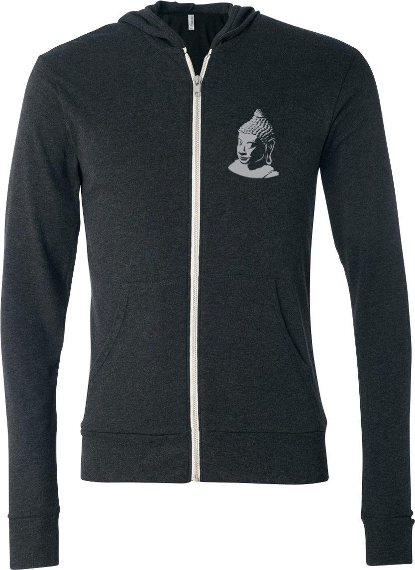 • A men's tri blend full-zip hoodie featuring the buddha pocket print