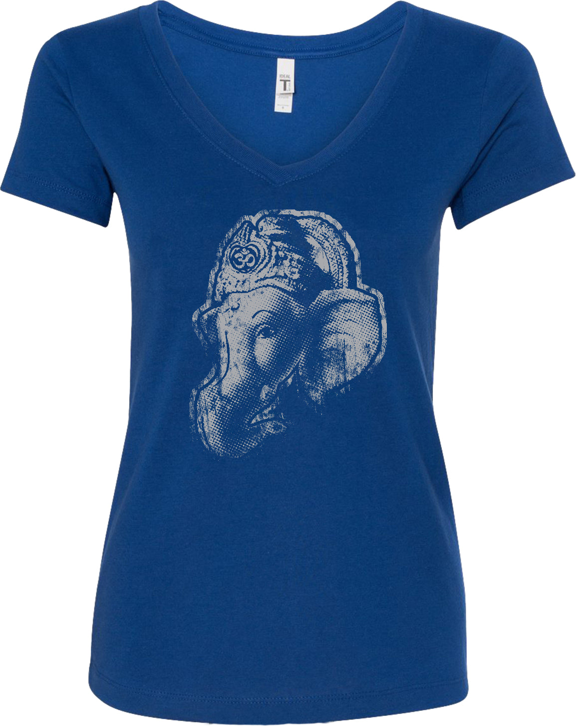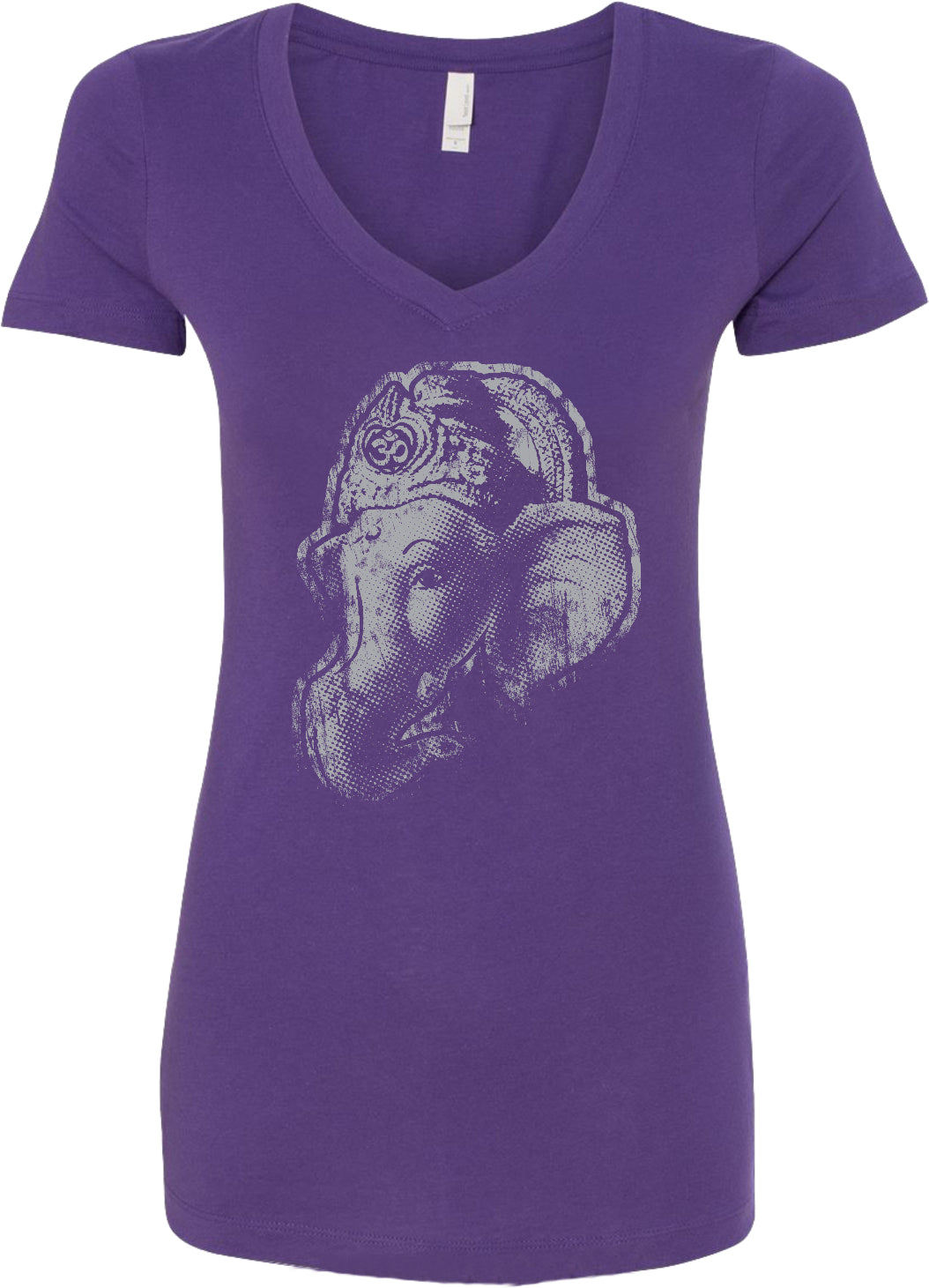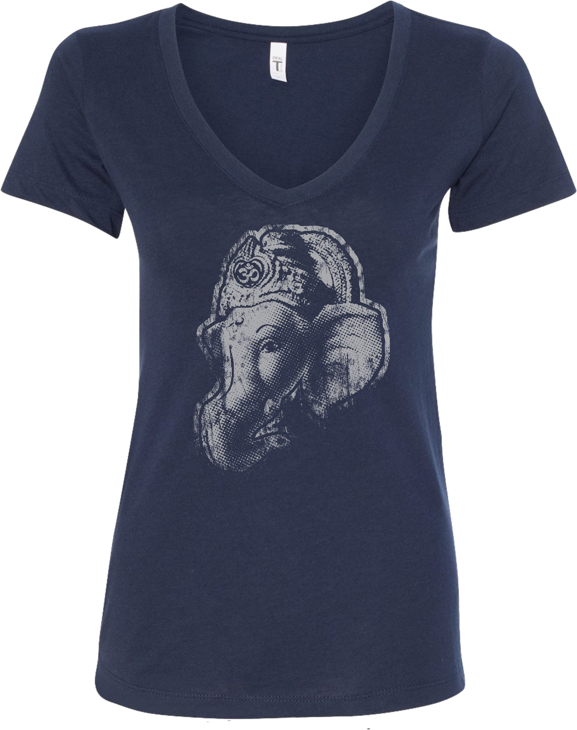 - A ladies blended v-neck t-shirt featuring a side profile of the wise Ganesha