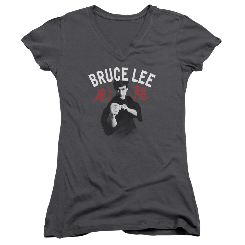 An officially licensed Bruce Lee juniors v-neck shirt with a slim fit silhouette. (For more of a relaxed fit order one to two sizes up) Made from comfortable 100% cotton. The juniors tee features Bruce Lee ready to fight. This shirt makes the perfect gift for fans of Bruce Lee known as one of the most influential martial artists of all time.