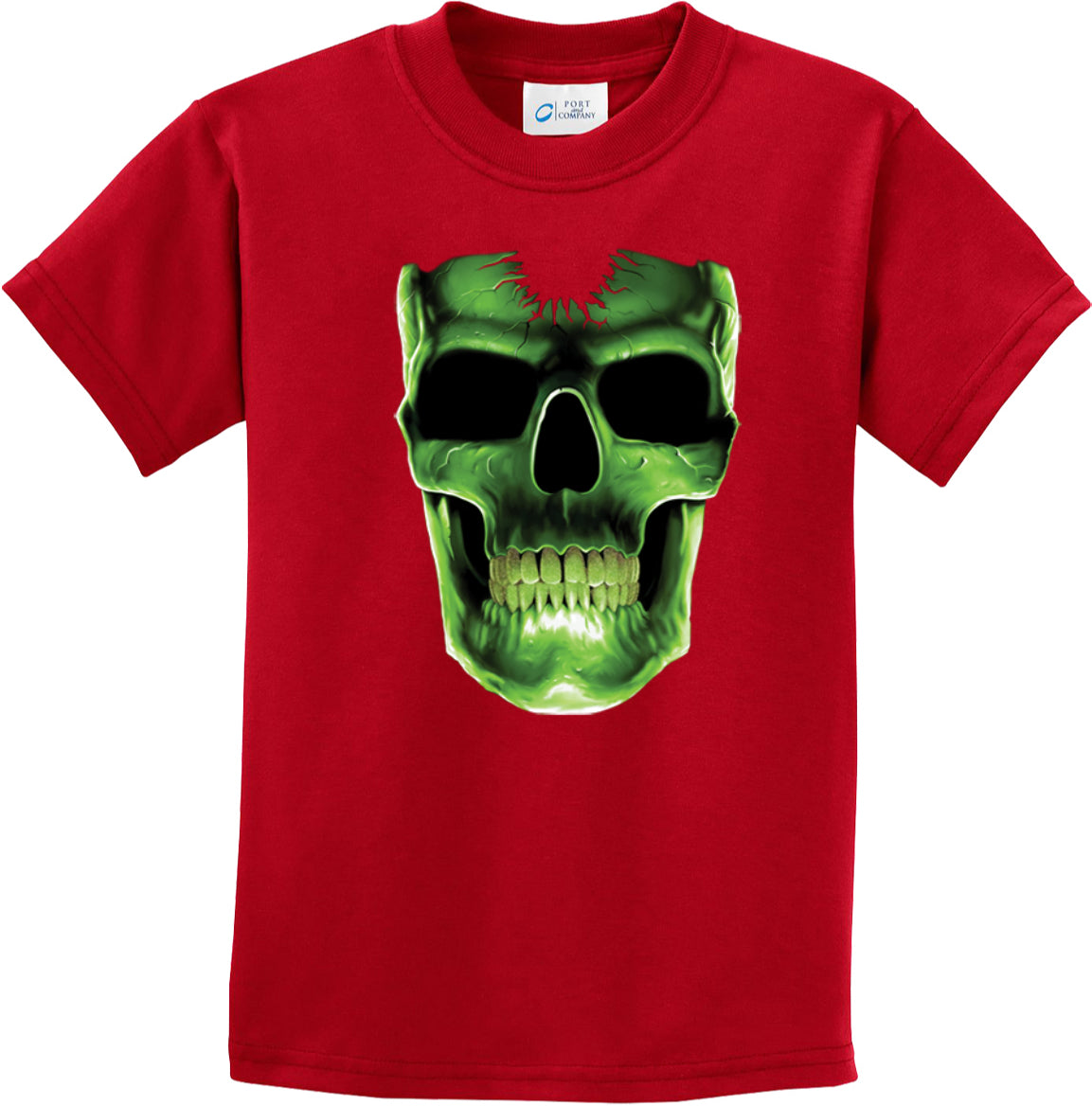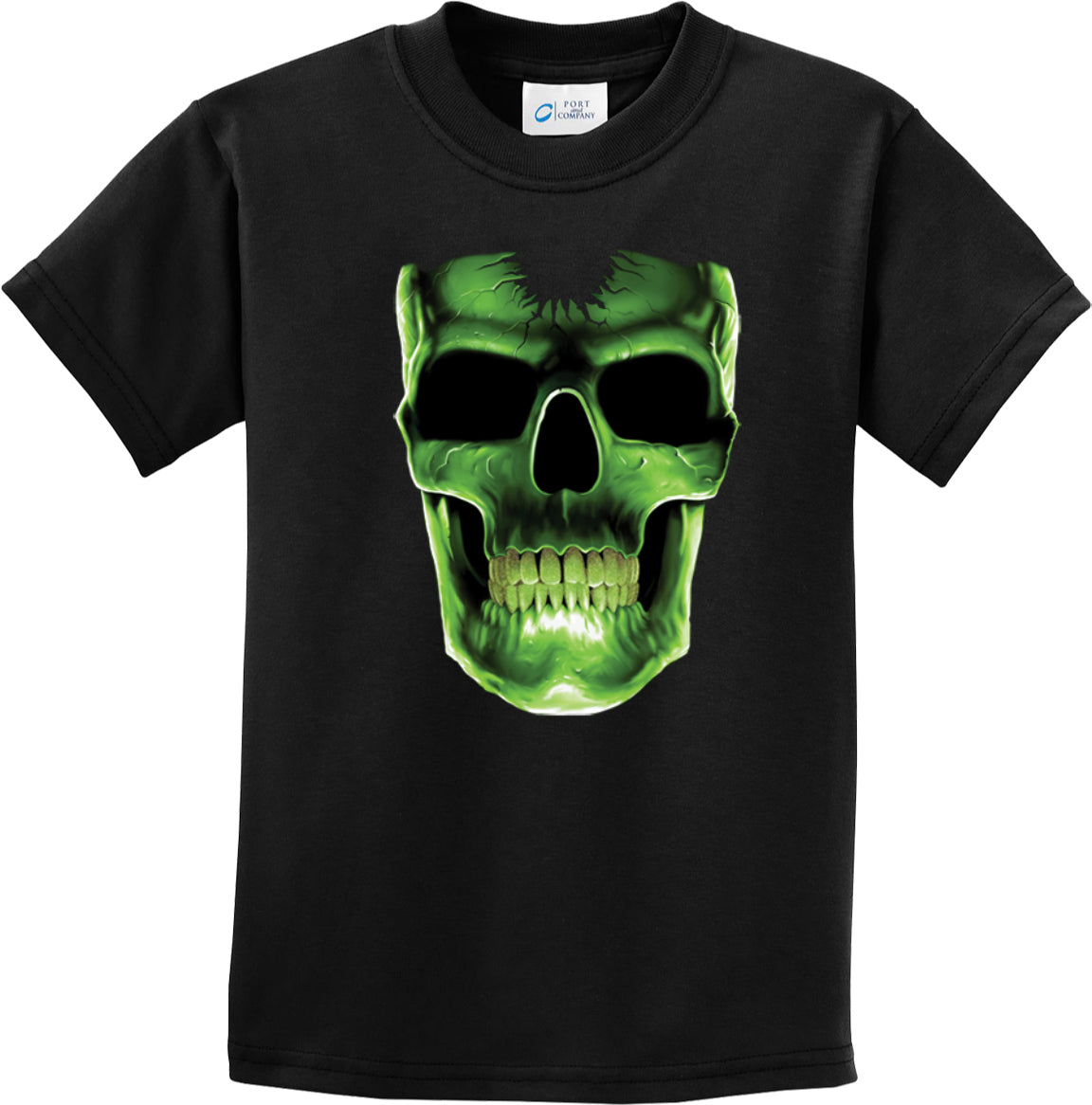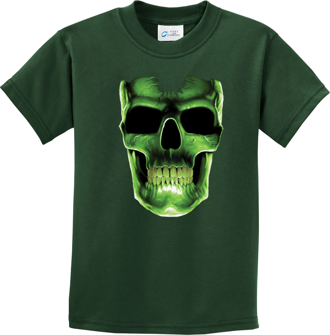 - A youth t-shirt featuring a glowing skull