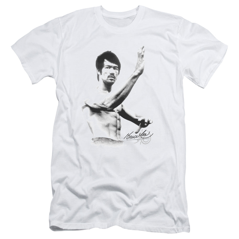 Bruce Lee Serious Fighting Pose White Slim Fit T-shirt