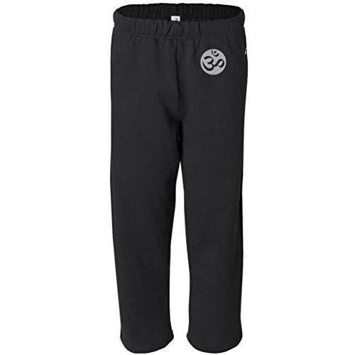 Well-suited for any fitness activity, these blended open-bottom fleece pants make the sporting life a little more comfortable. Side seamed slightly tapered leg with open bottom. Cotton/poly blend. Hindu OM symbol printed on front hip