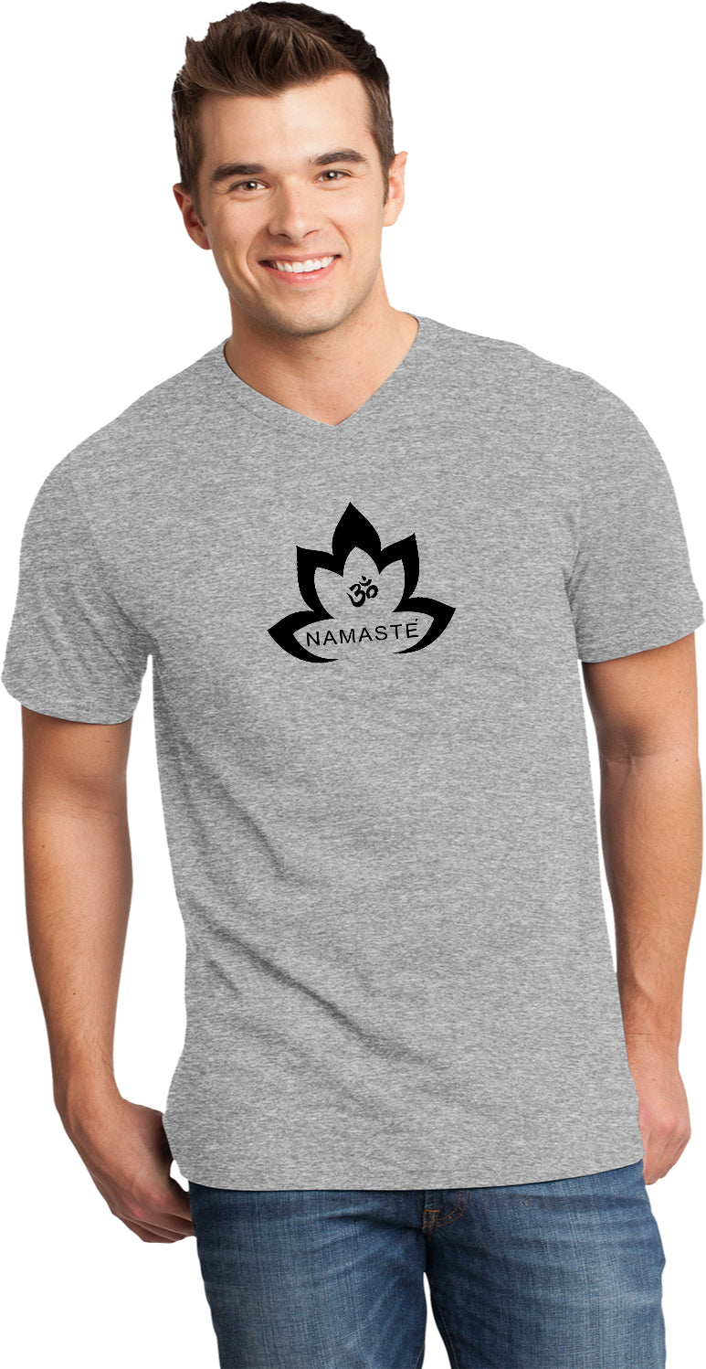 - A men's important v-neck t-shirt featuring the black namaste lotus