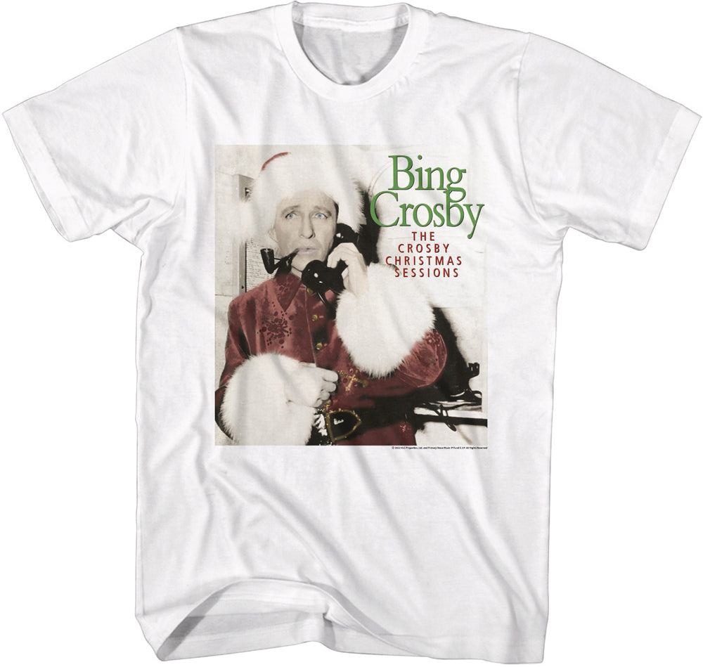 This cool shirt features a photo of Bing Crosby dressed as Santa