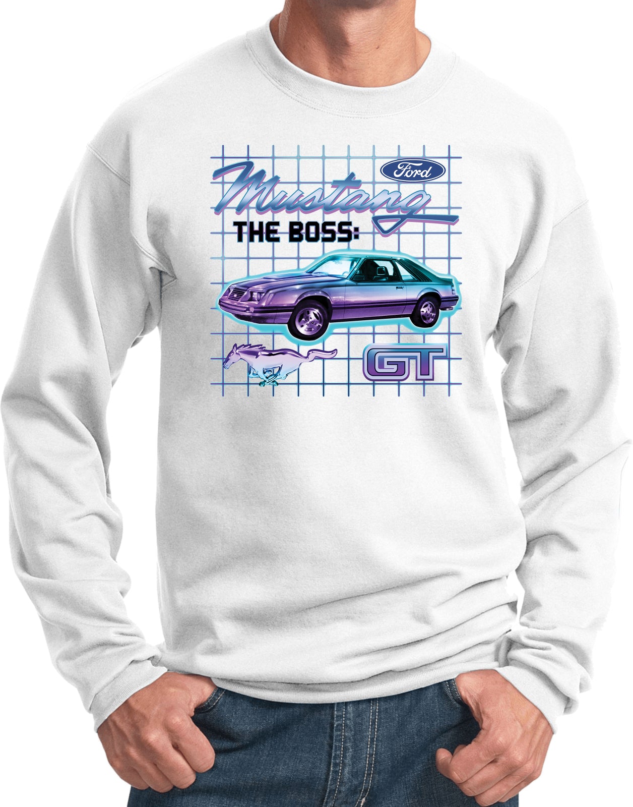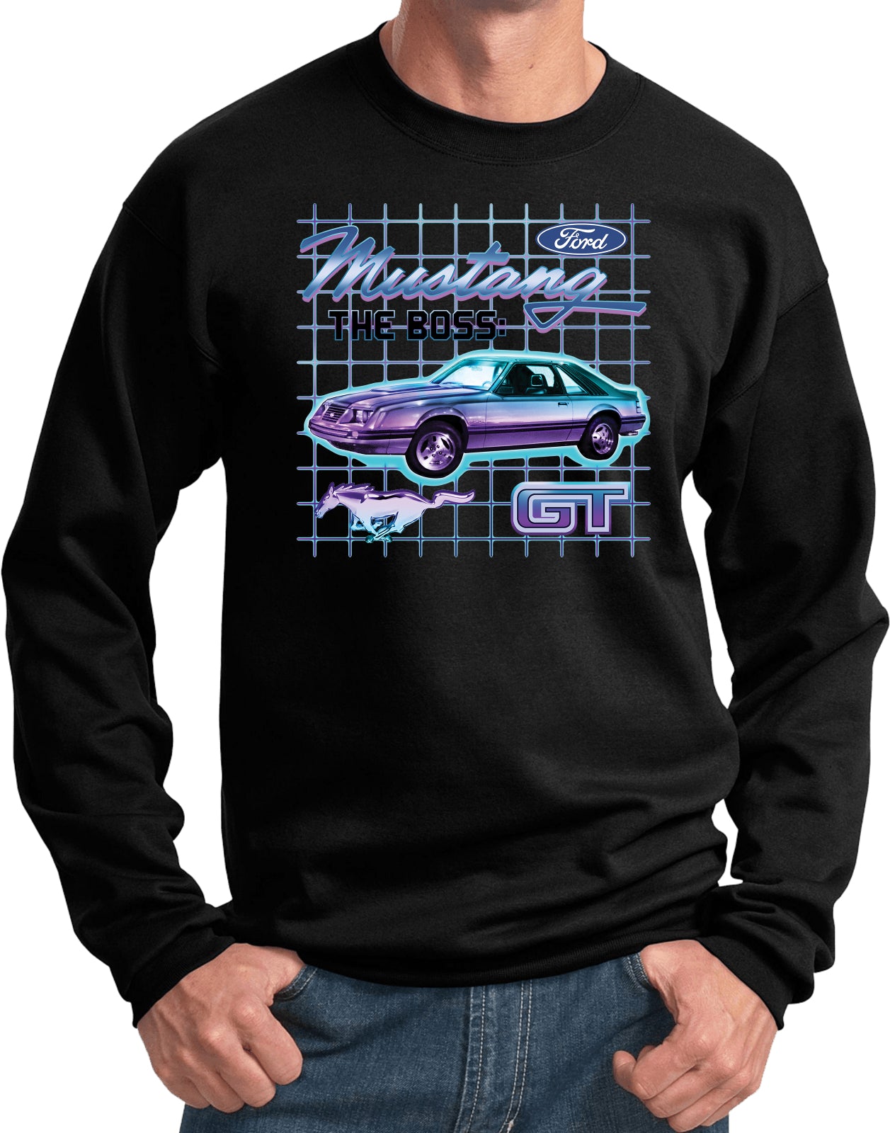 • A mens sweatshirt featuring a classic Ford Mustang GT Foxbody