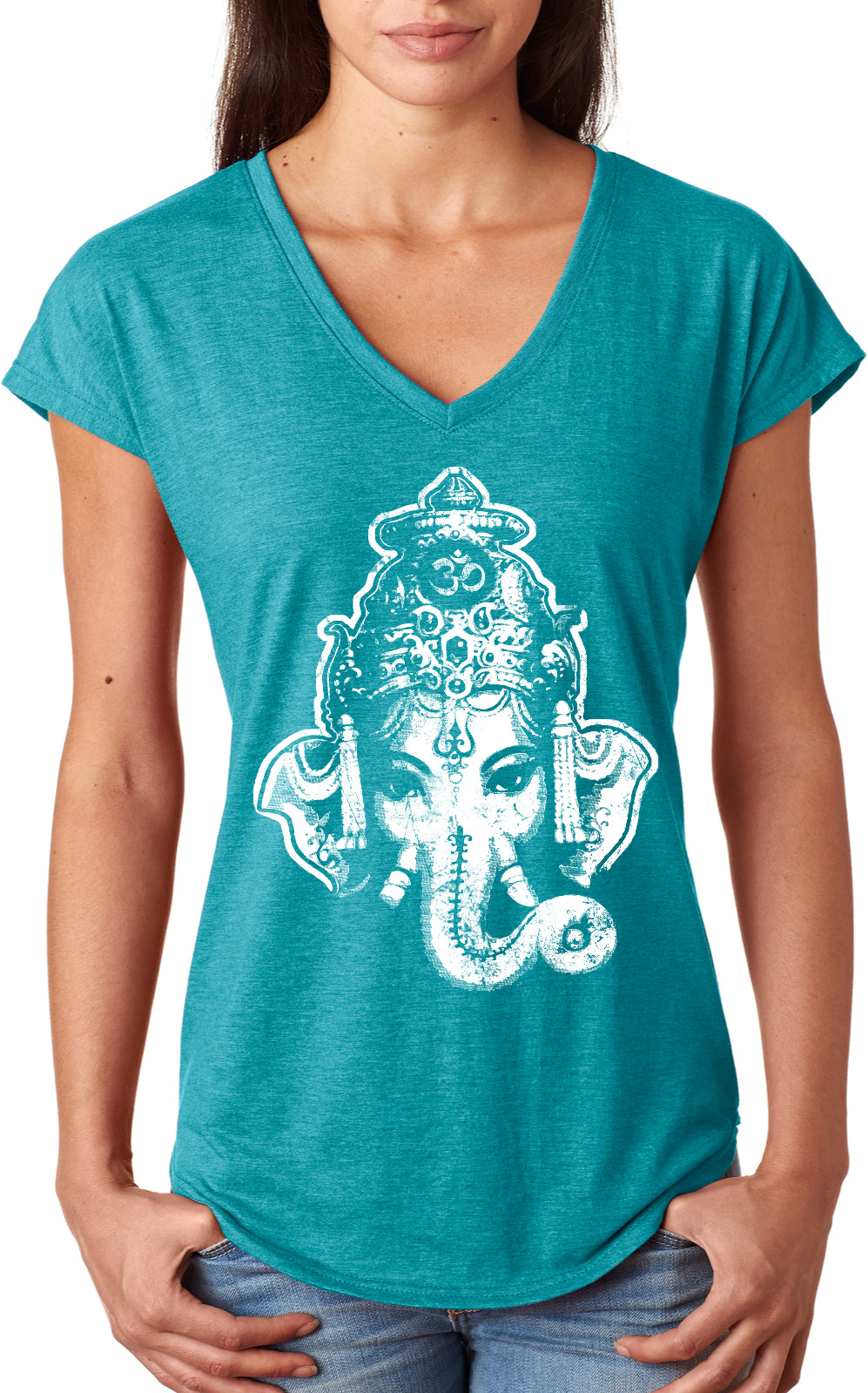 Womens Yoga T-shirt Big Ganesha Head Triblend V-neck