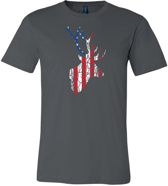 A patriotic deer premium t-shirt that fits both men and women with its traditional silhouette. Made from comfortable soft 100% ringspun cotton. The t-shirt features the American Flag in a deer silhouette. This shirt makes the perfect gift for all who are proud to be an American.