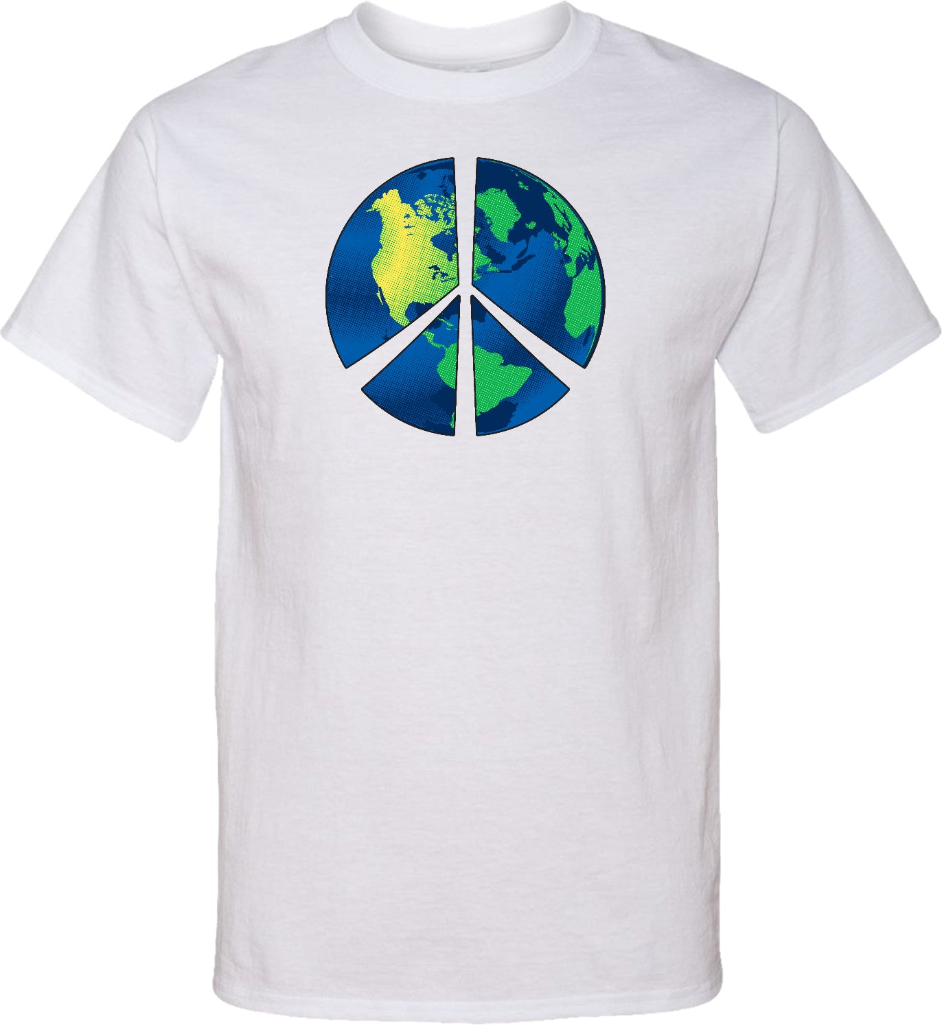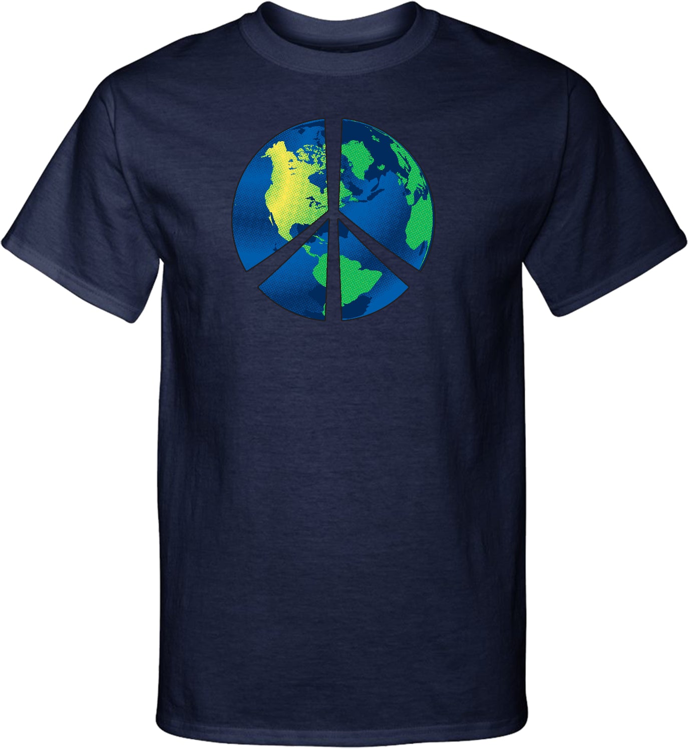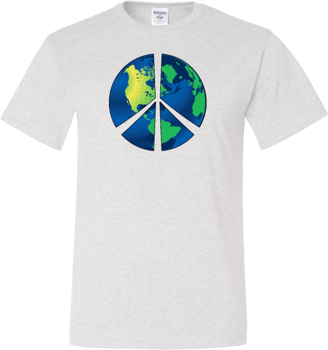 - A mens tall t-shirt featuring a blue peace earth symbol