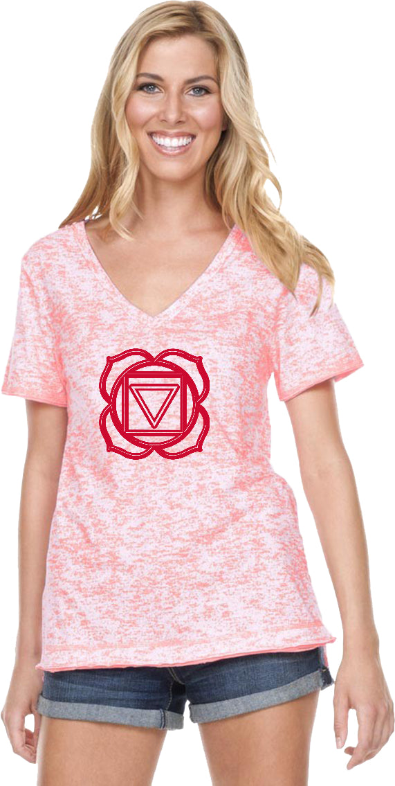 Muladhara Chakra Burnout V-neck Yoga Tee Shirt
