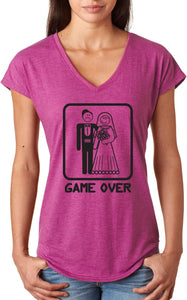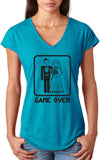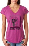 Ladies Game Over Triblend V-Neck Shirt Black Print