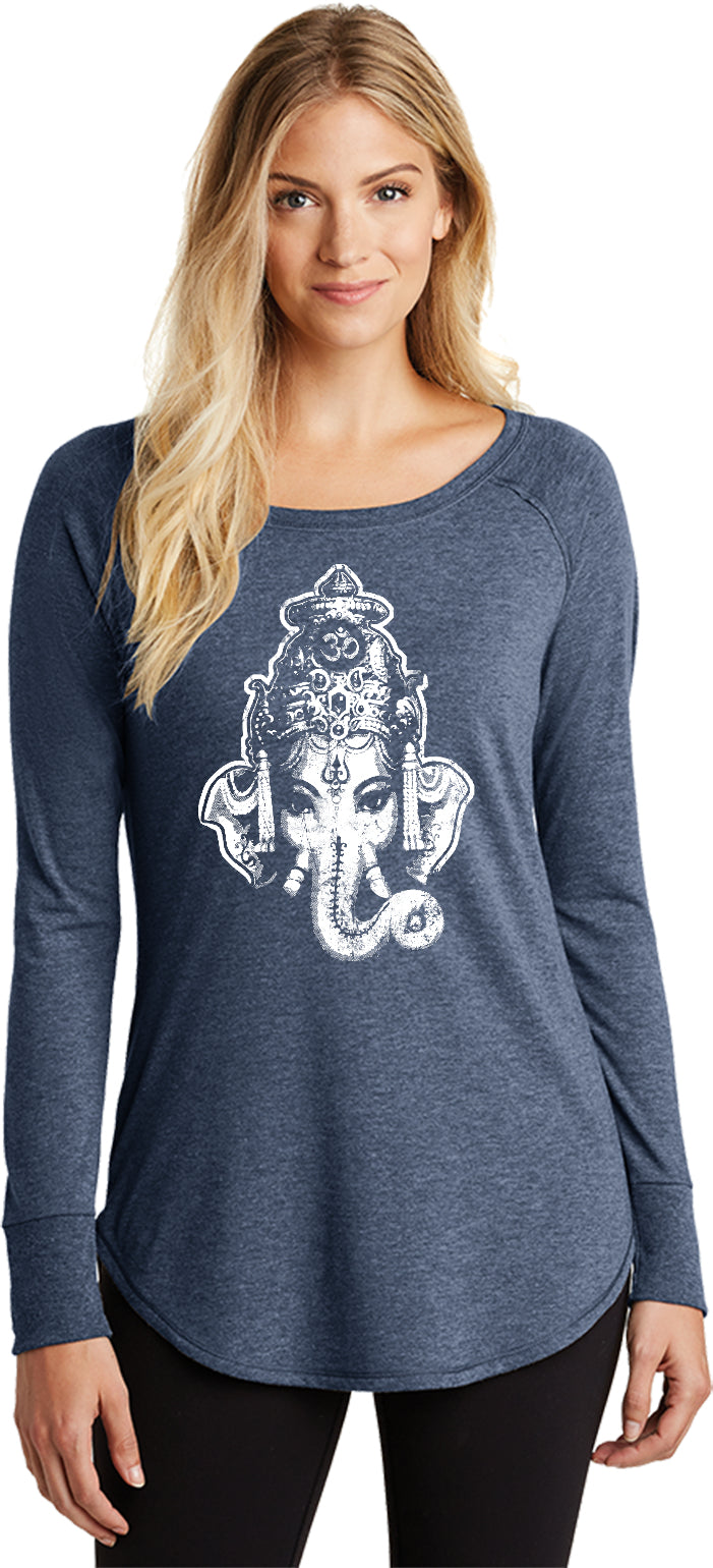Womens Yoga T-shirt Ganesha Head Long Sleeve Tunic