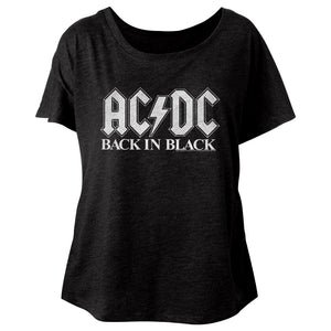 AC/DC Ladies Dolman T-Shirt Back in Black White Logo Tee