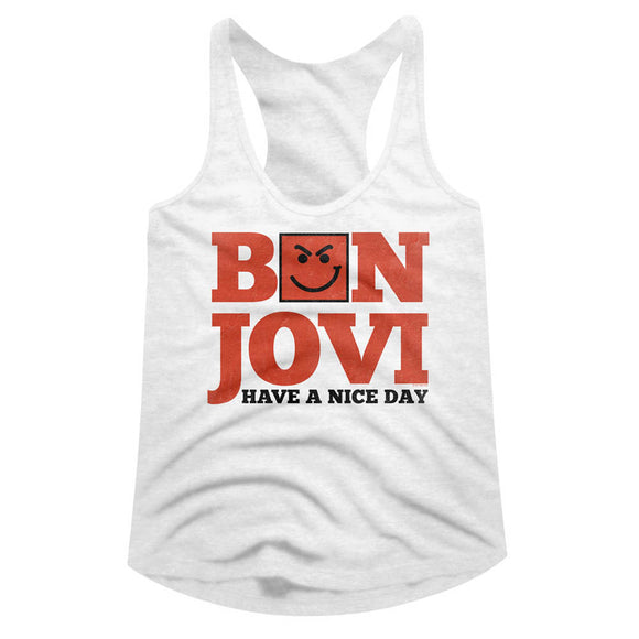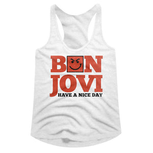 - A Ladies Bon Jovi Racerback Tank Top featuring the ninth studio album Have a Nice Day