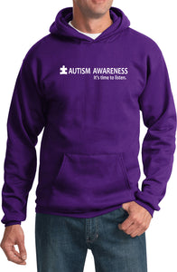 - A mens hoodie with a kangaroo pouch pocket featuring Autism Awareness: It's time to listen