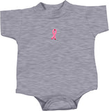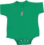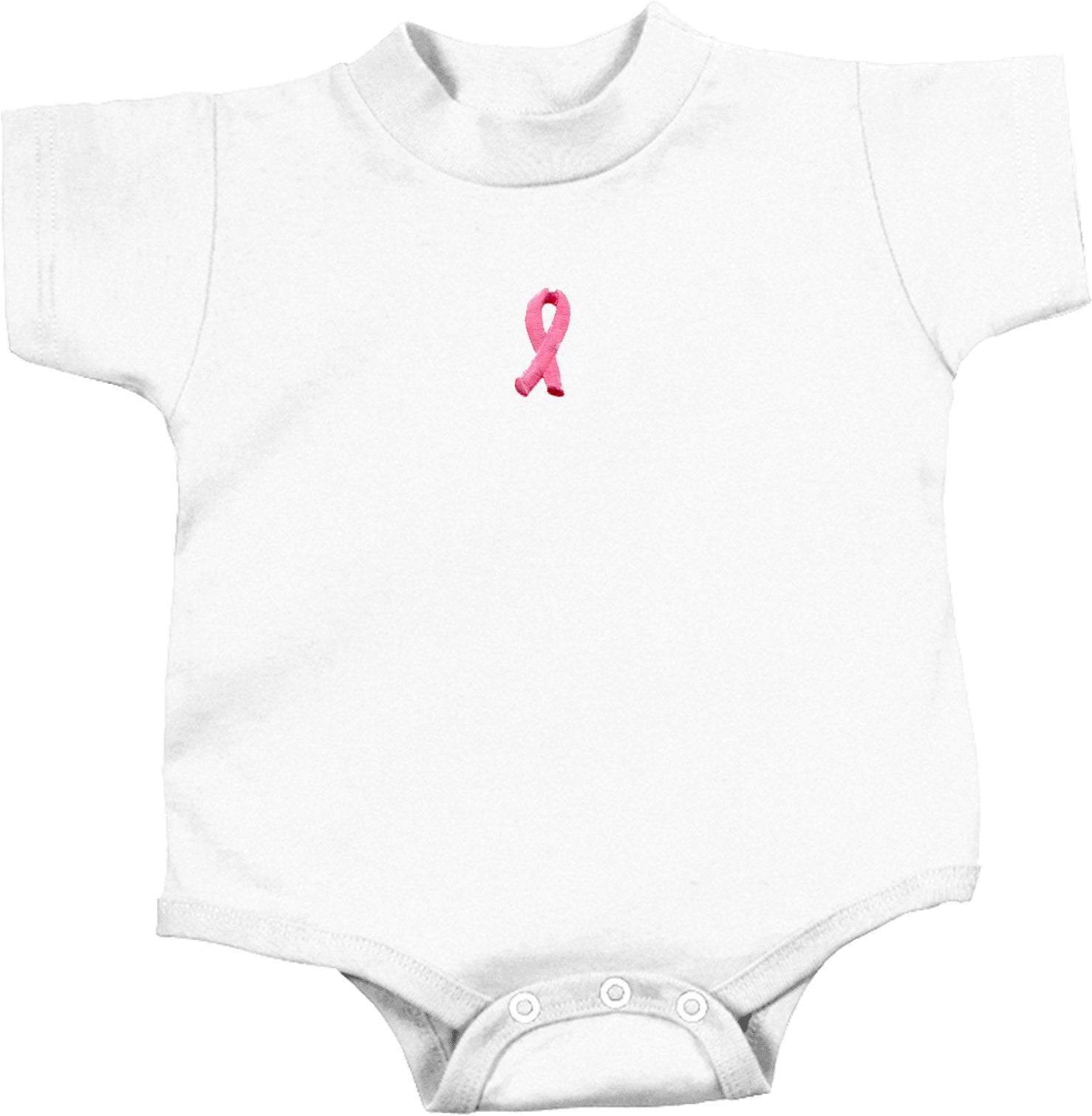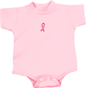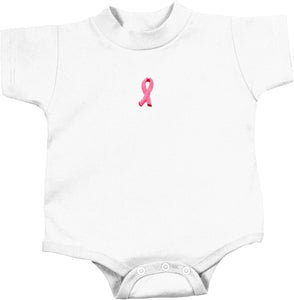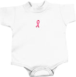 - An infant snap suit featuring an embroidered Pink Breast Cancer Ribbon