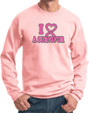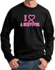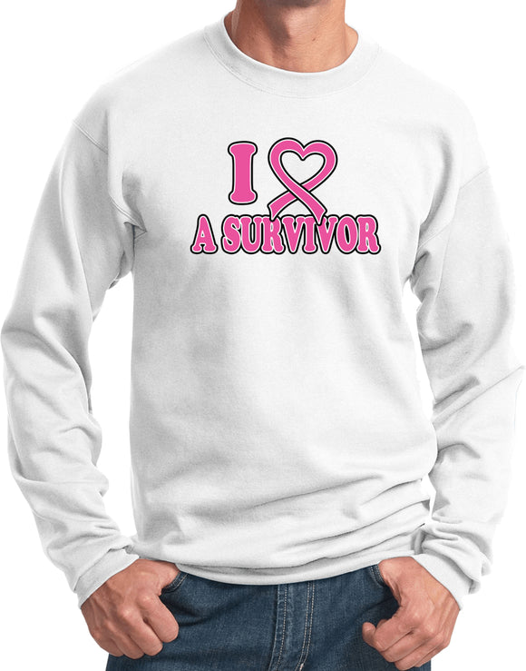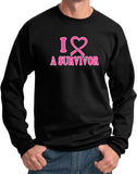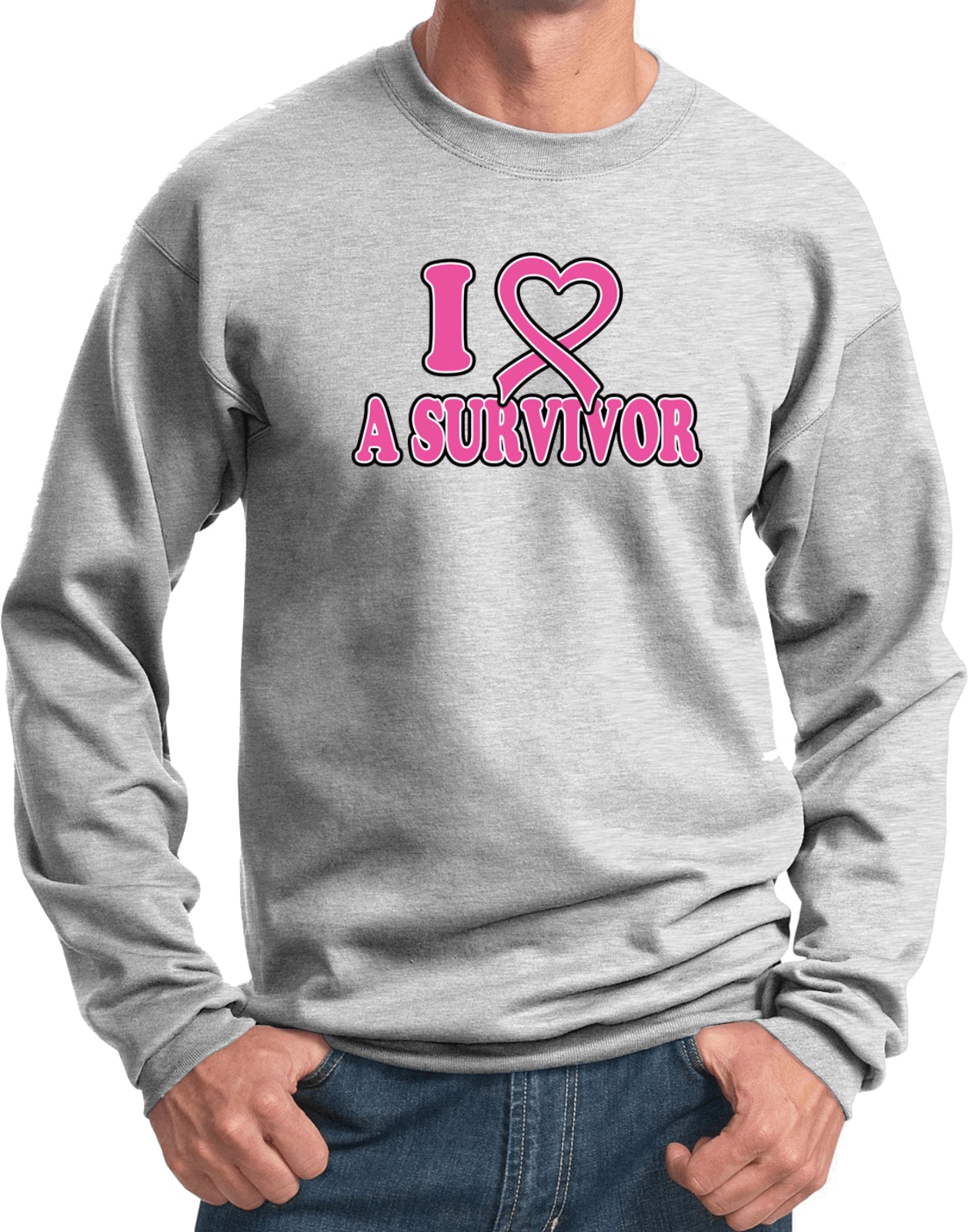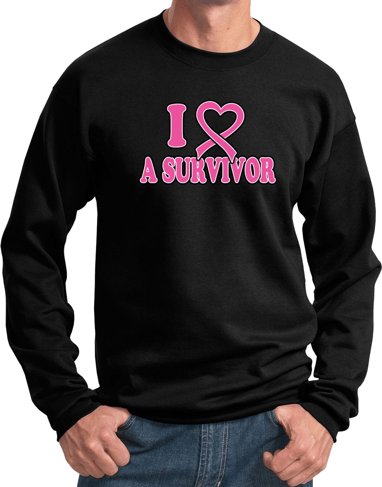 - A breast cancer awareness sweatshirt featuring I Love a Survivor