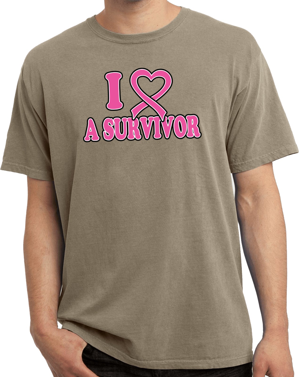 - A breast cancer awareness t-shirt featuring I Love a Survivor