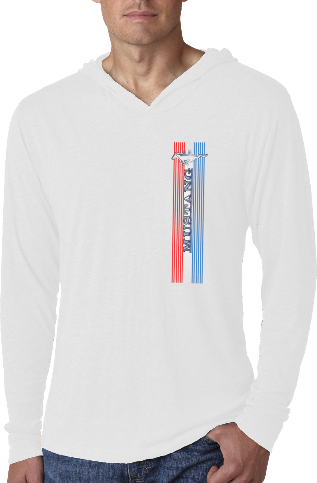 - A mens lightweight hoodie featuring a Ford Mustang Pony logo