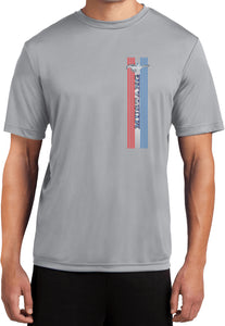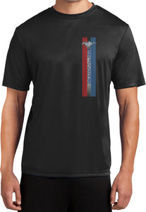 - A mens dry wicking t-shirt featuring a Ford Mustang Pony logo