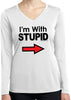 - A ladies I'm with stupid dry wicking long sleeve v-neck