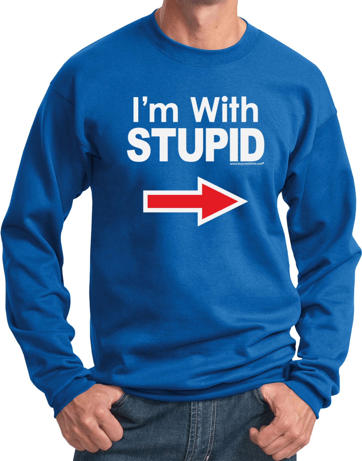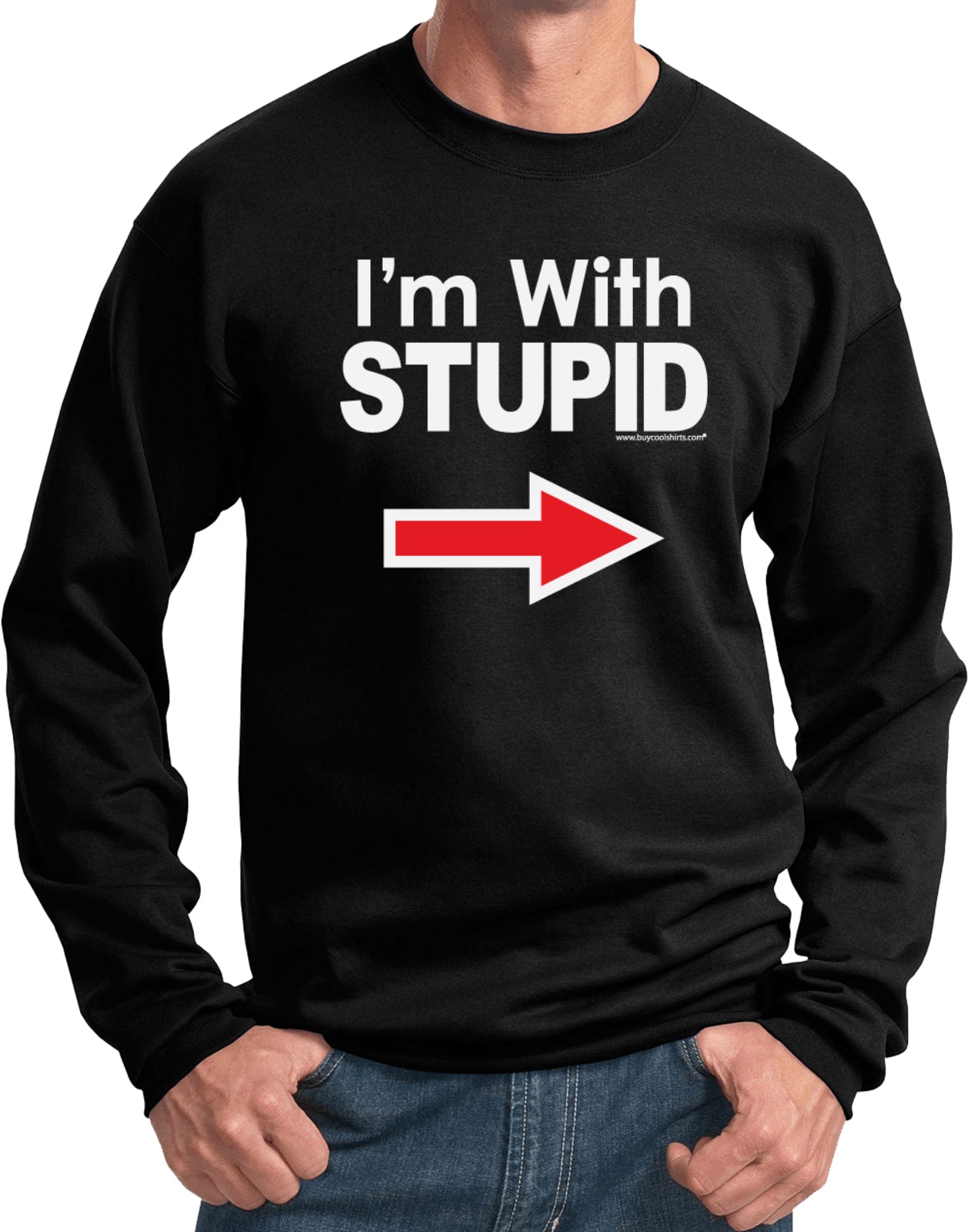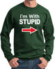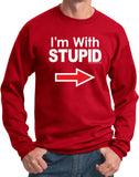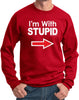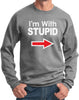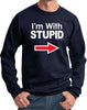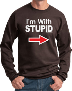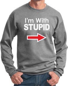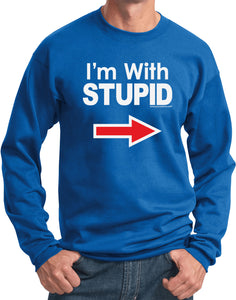 - A pullover sweatshirt featuring I'm With Stupid