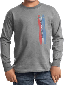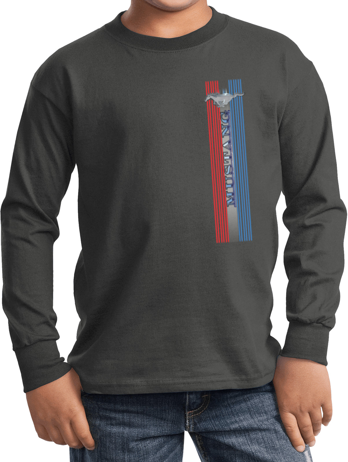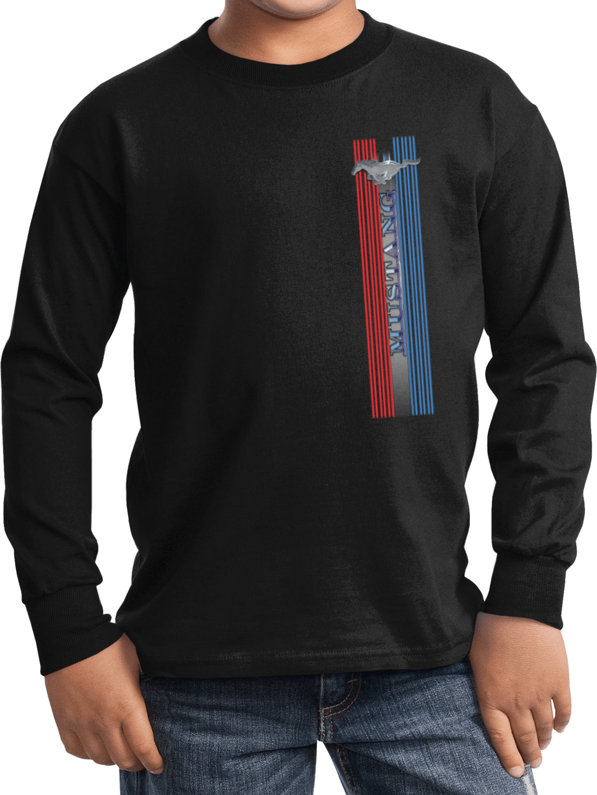 - A youth long sleeve featuring a Ford Mustang Pony logo
