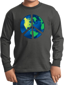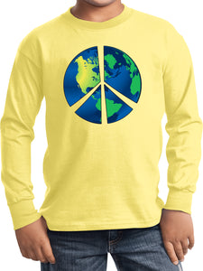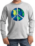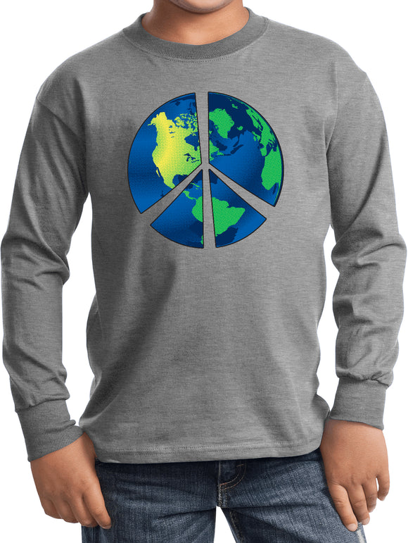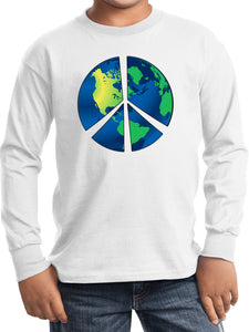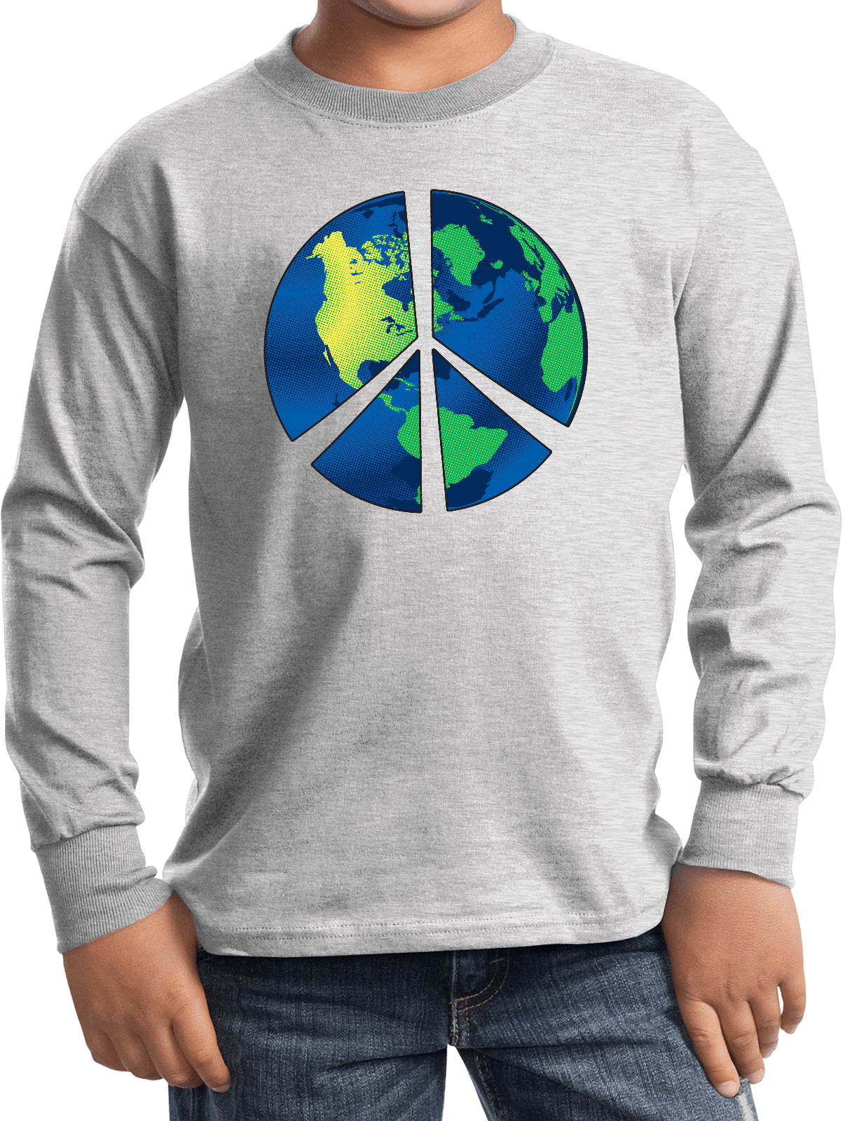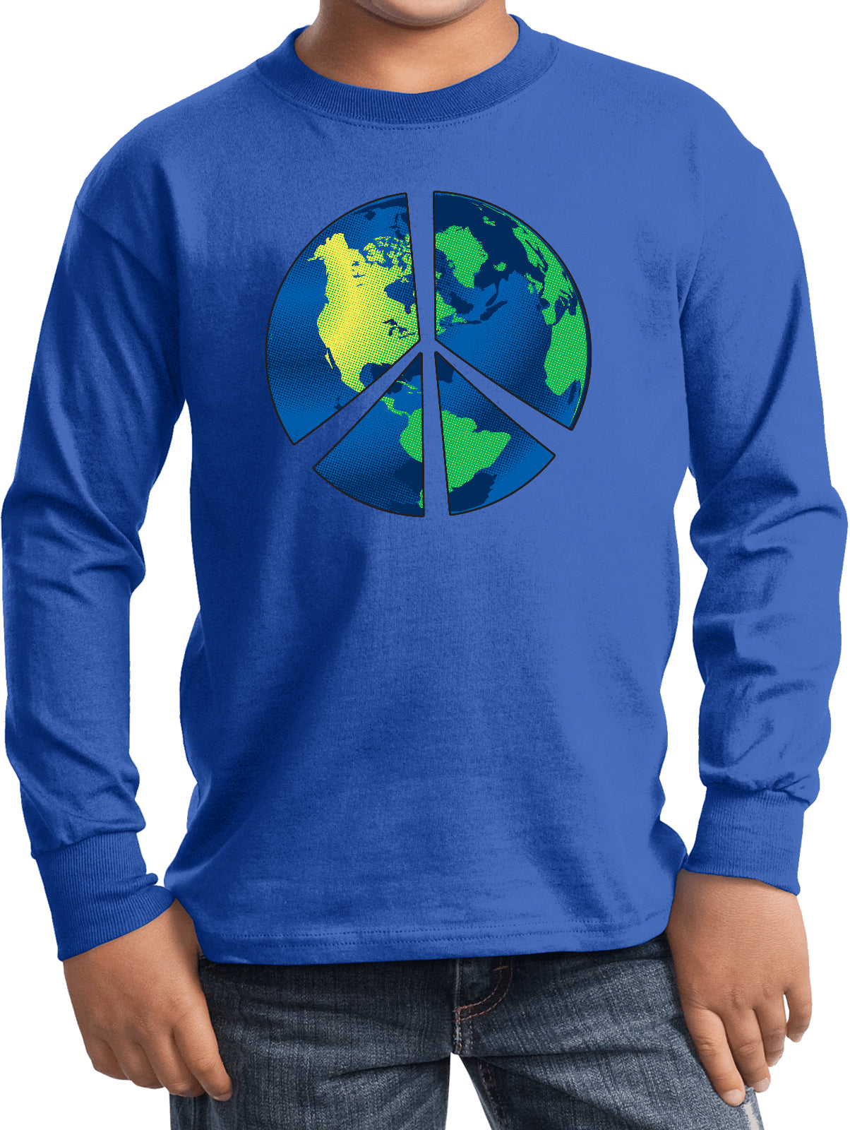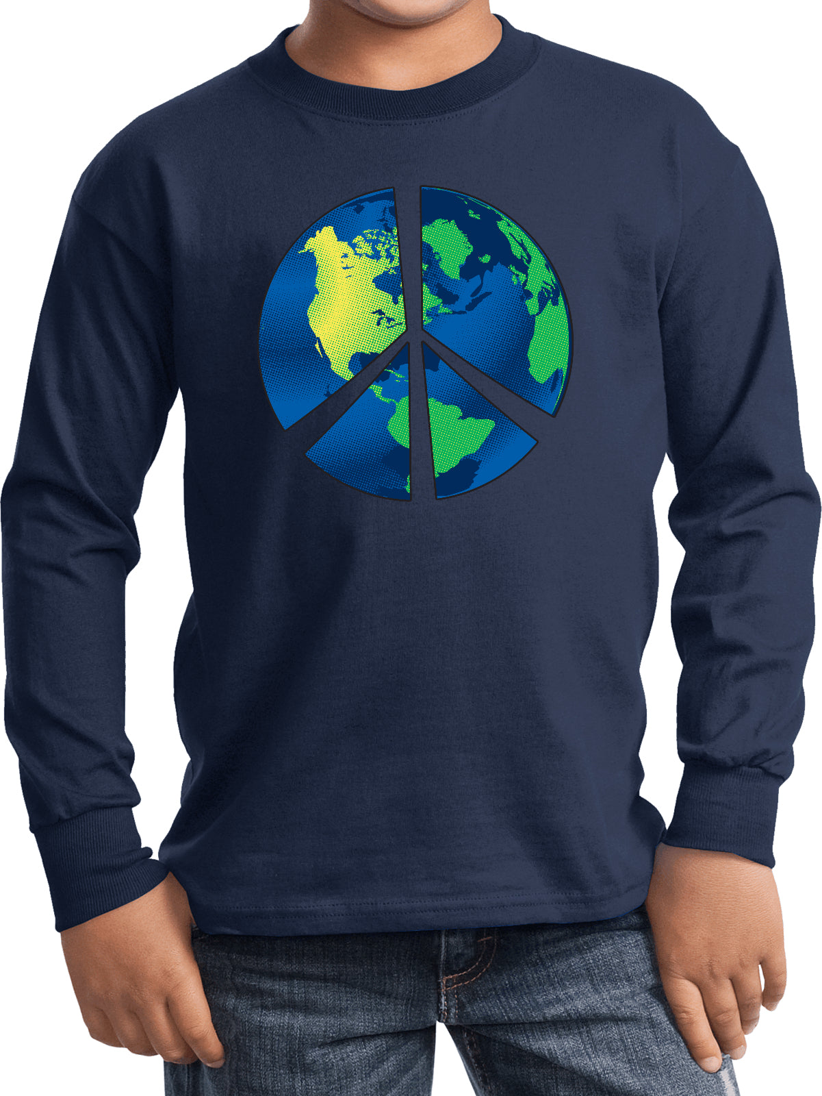 - A kids long sleeve shirt featuring a blue peace earth symbol