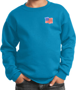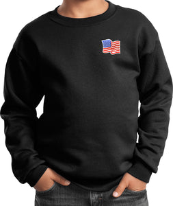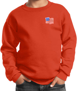 - A kids sweatshirt featuring the American Flag as a pocket print