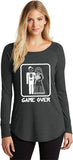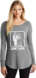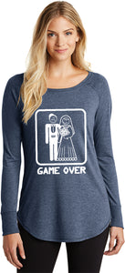 A funny Game Over Marriage design on a ladies tri blend long sleeve shirt. Our ladies tee is made with a premium blend of poly/cotton/rayon for a soft touch and comfortable fit.