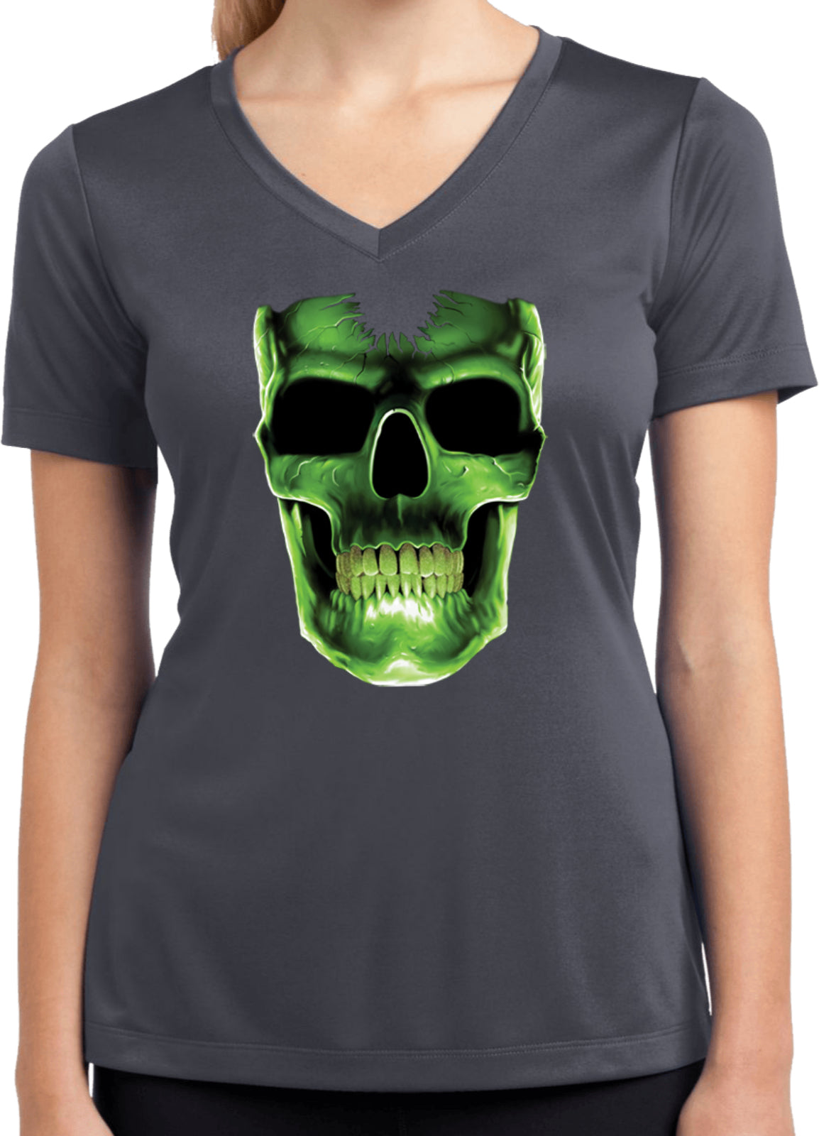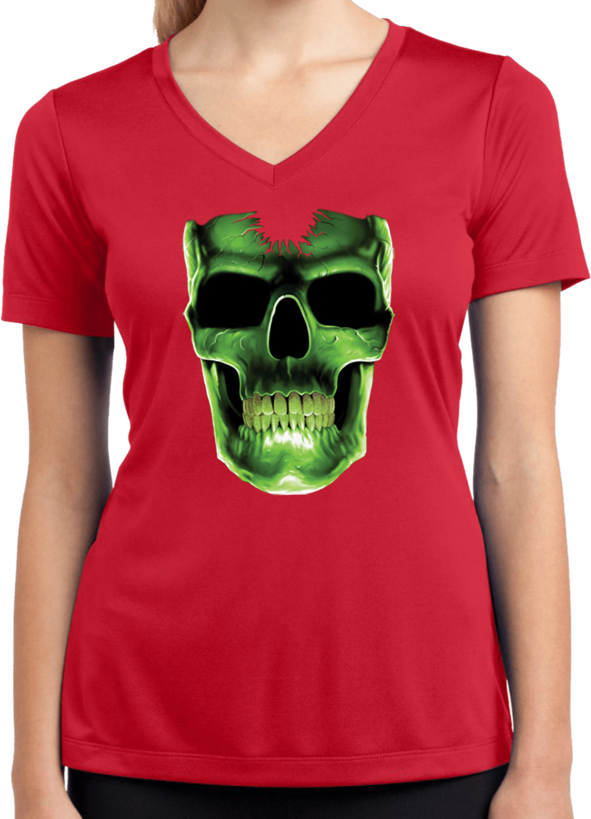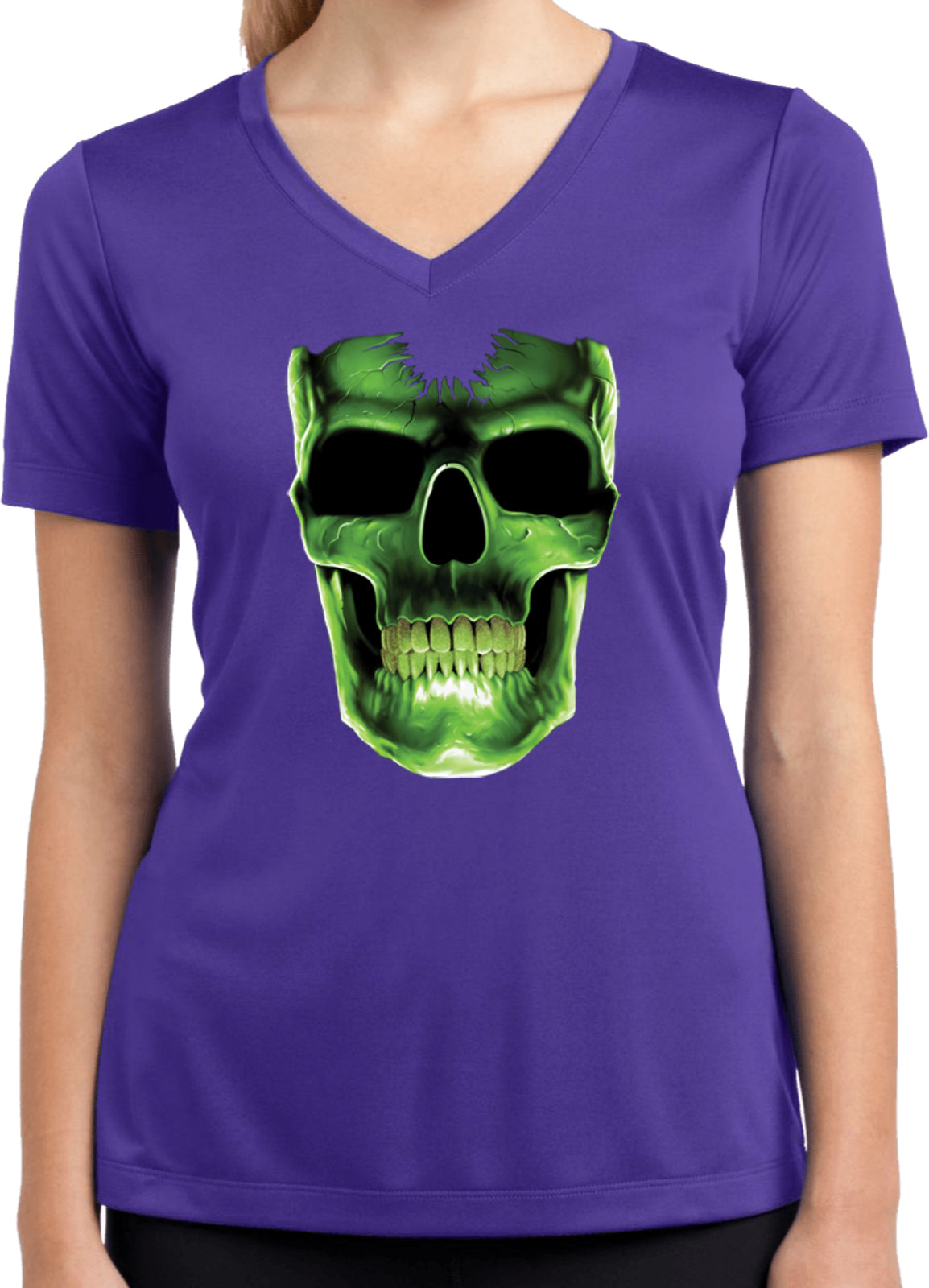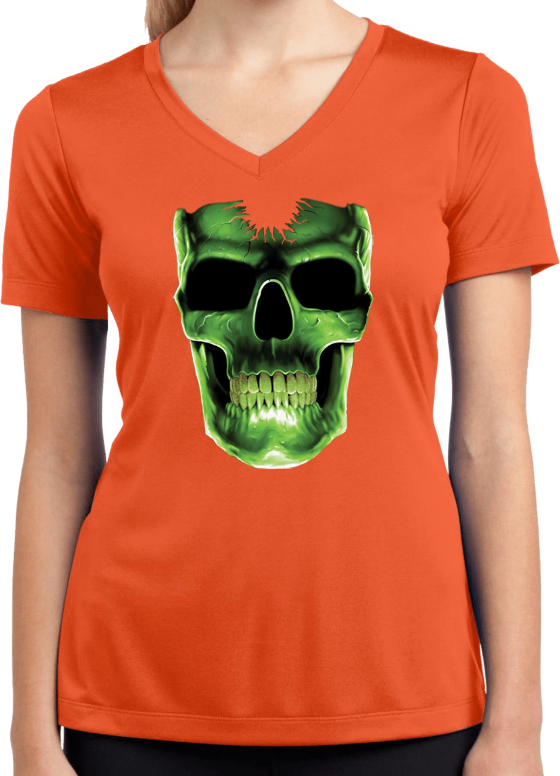 Ladies Halloween T-shirt Glow Bones Moisture Wicking V-Neck