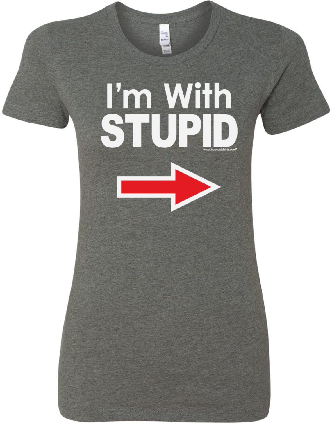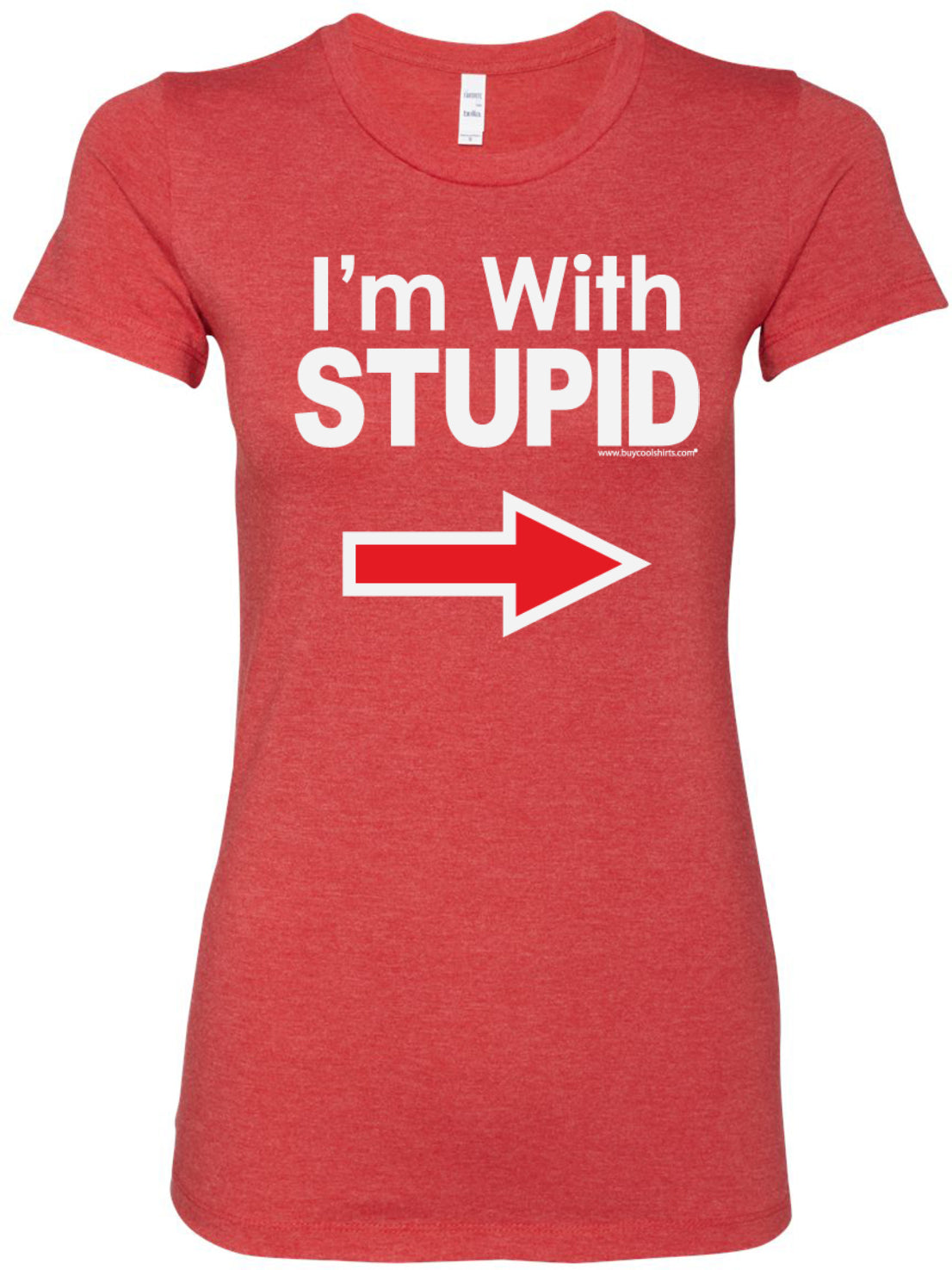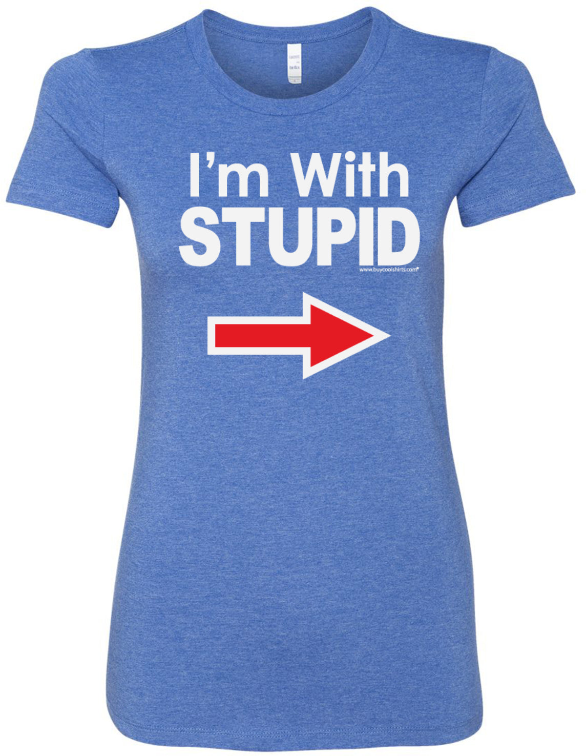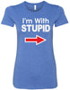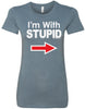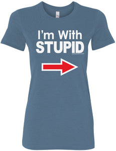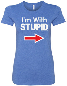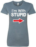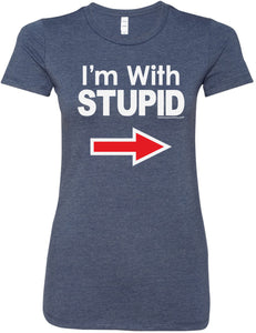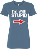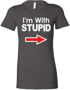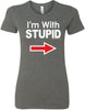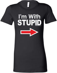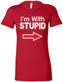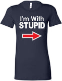 • A ladies longer length shirt featuring I'm With Stupid