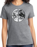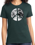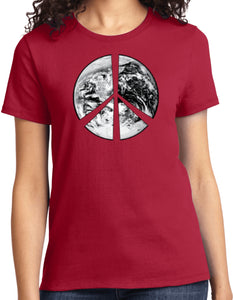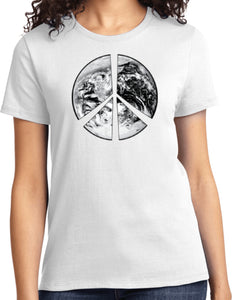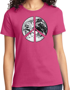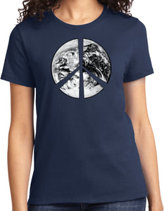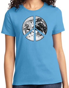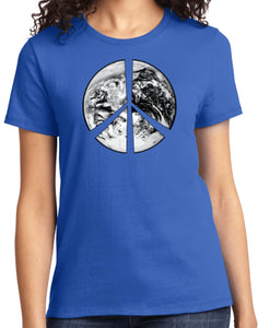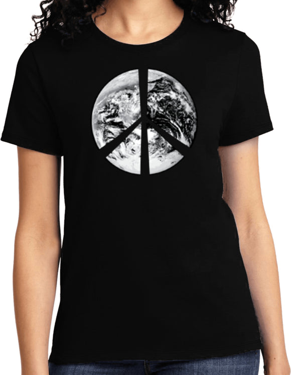 - A ladies t-shirt featuring a Peace Earth Satellite Symbol