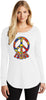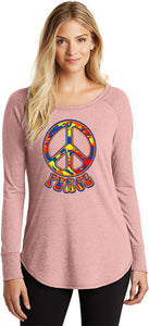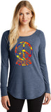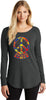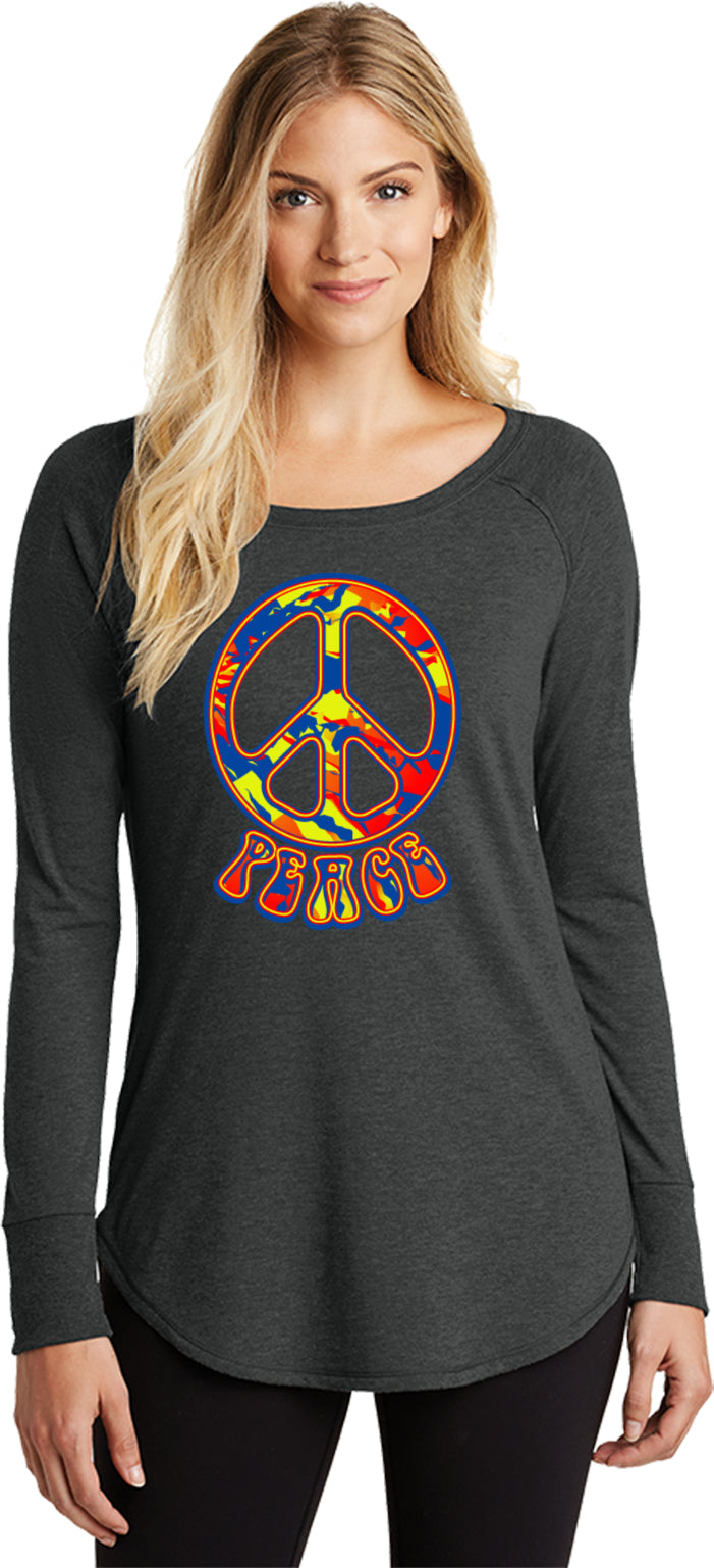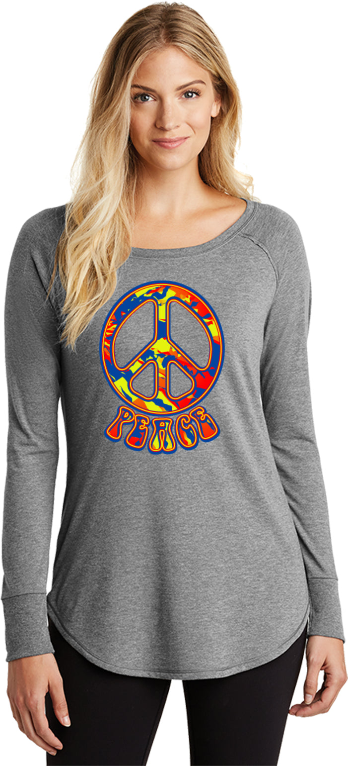 - A ladies tri blend long sleeve featuring a funky 70's peace sign