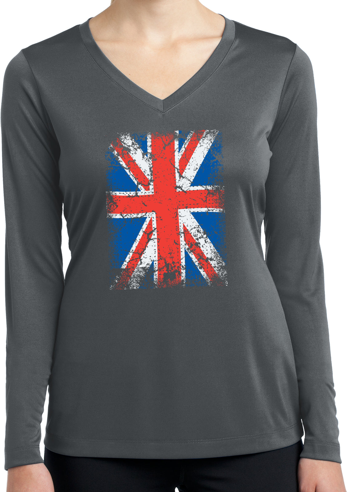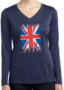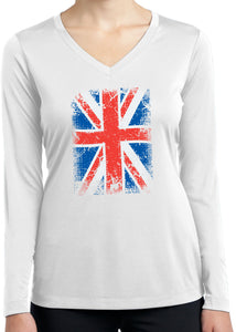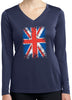 - Union Jack Flag Ladies Dry Wicking Long Sleeve V-neck