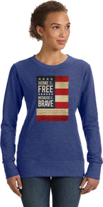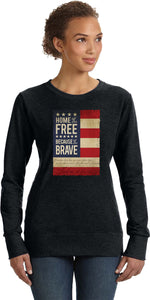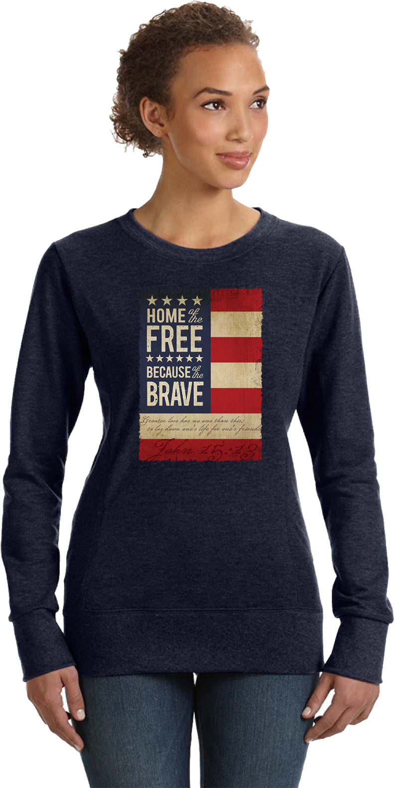 - A ladies lightweight sweatshirt featuring Home of the Free Because of the Brave