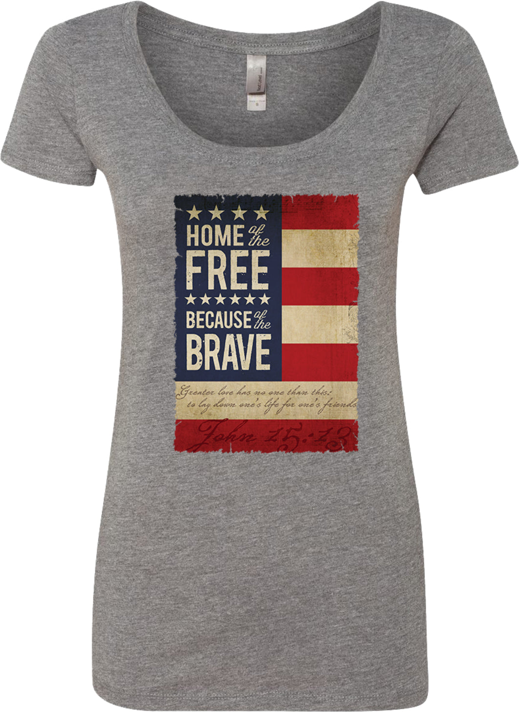 • A ladies scoop neck shirt featuring Home of the Free Because of the Brave
