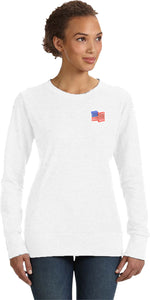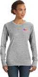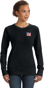 - A ladies lightweight sweatshirt featuring the American Flag as a pocket print