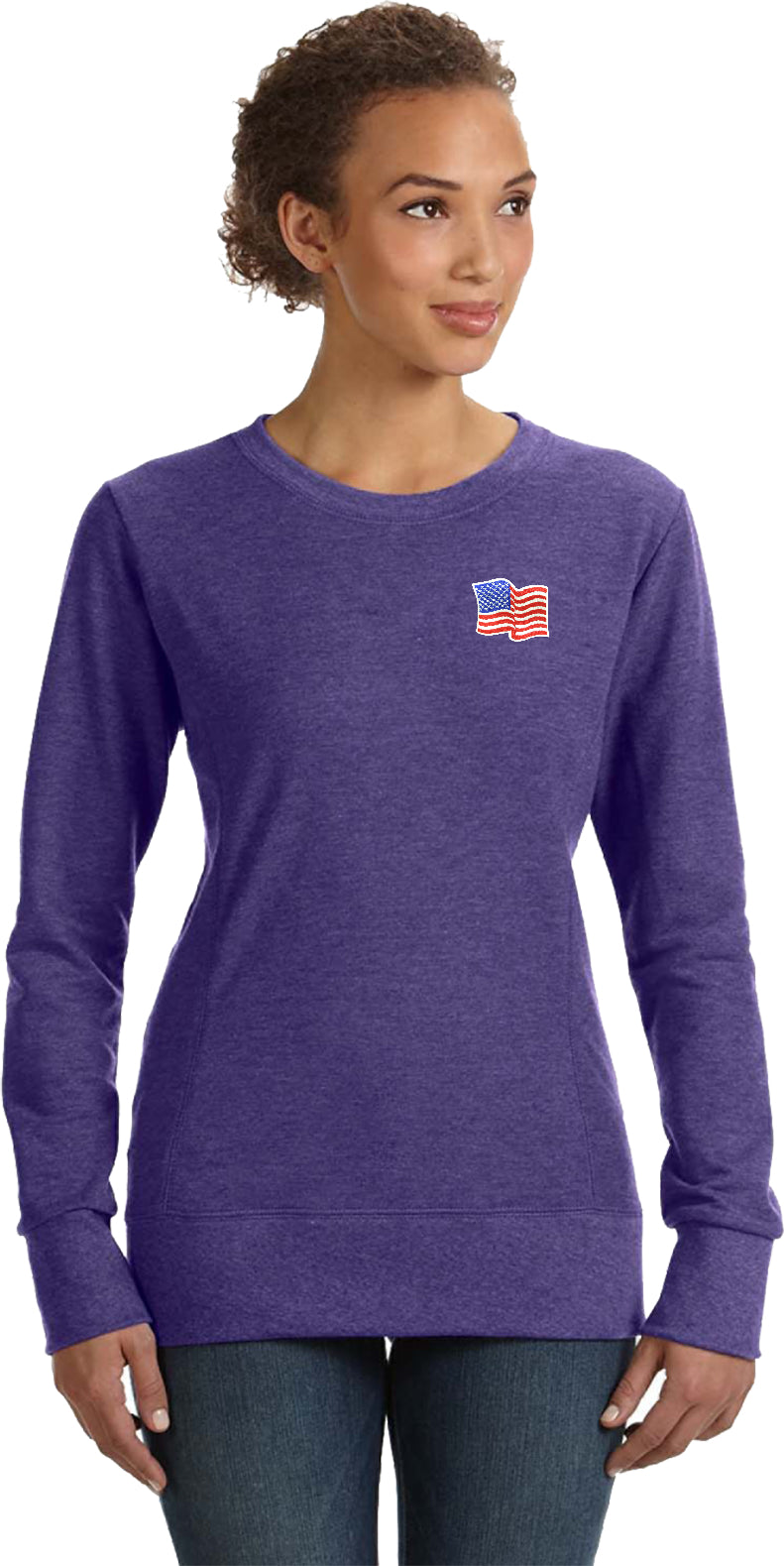 • A ladies lightweight sweatshirt featuring the American Flag as a pocket print