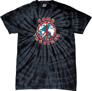 - A spider tie dye t-shirt featuring a come together peace design