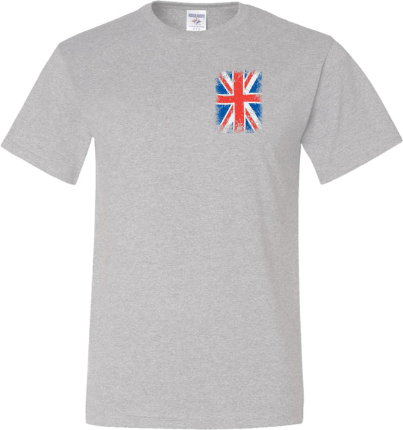 - A mens tall t-shirt featuring a Union Jack Flag as a pocket print